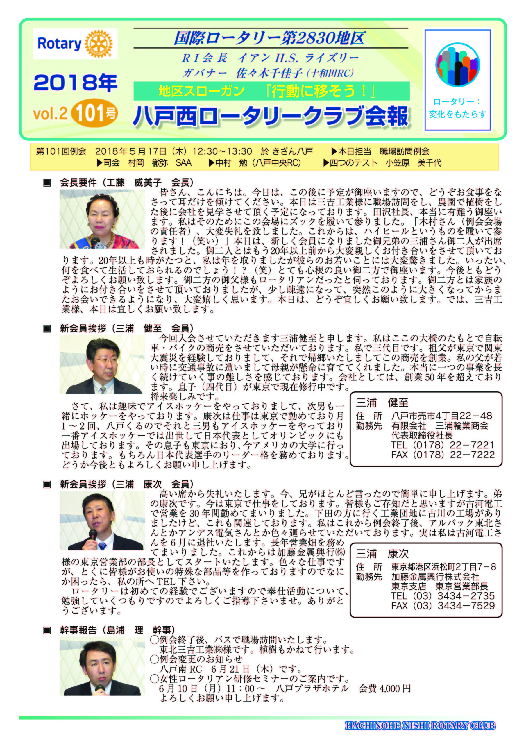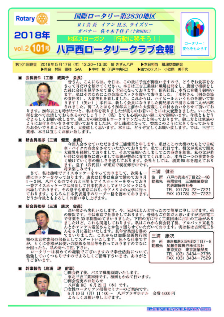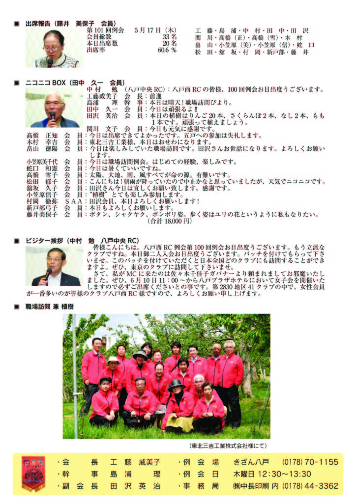 101回 八戸西ロータリークラブ会報