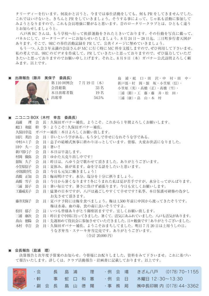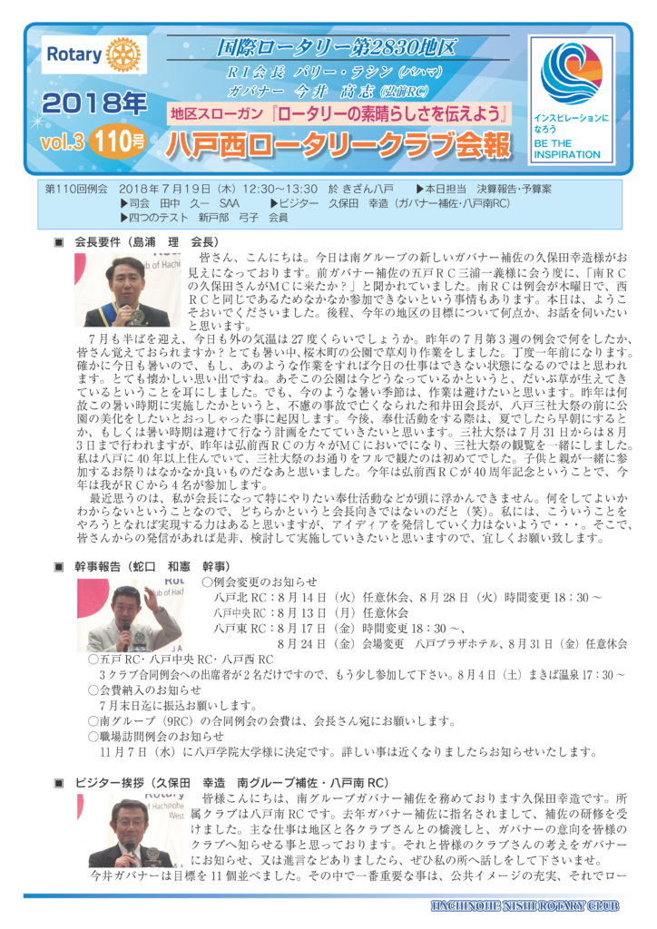 110回 八戸西ロータリークラブ会報