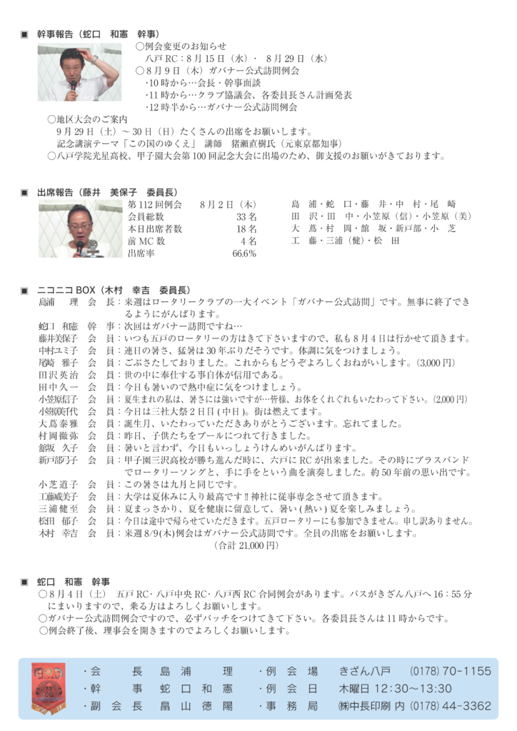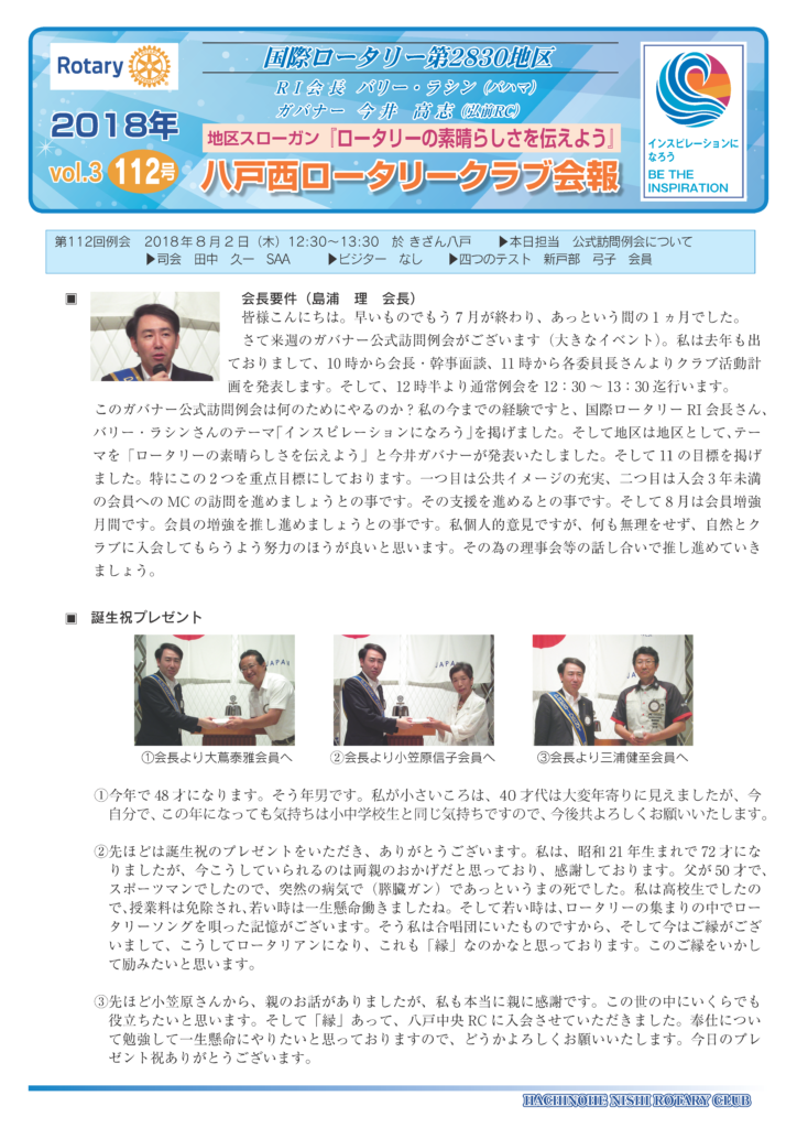 112回 八戸西ロータリークラブ会報
