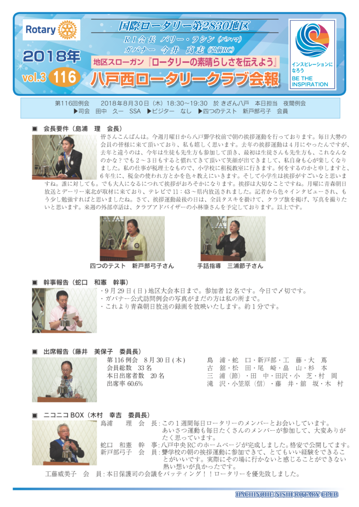 116回 八戸西ロータリークラブ会報