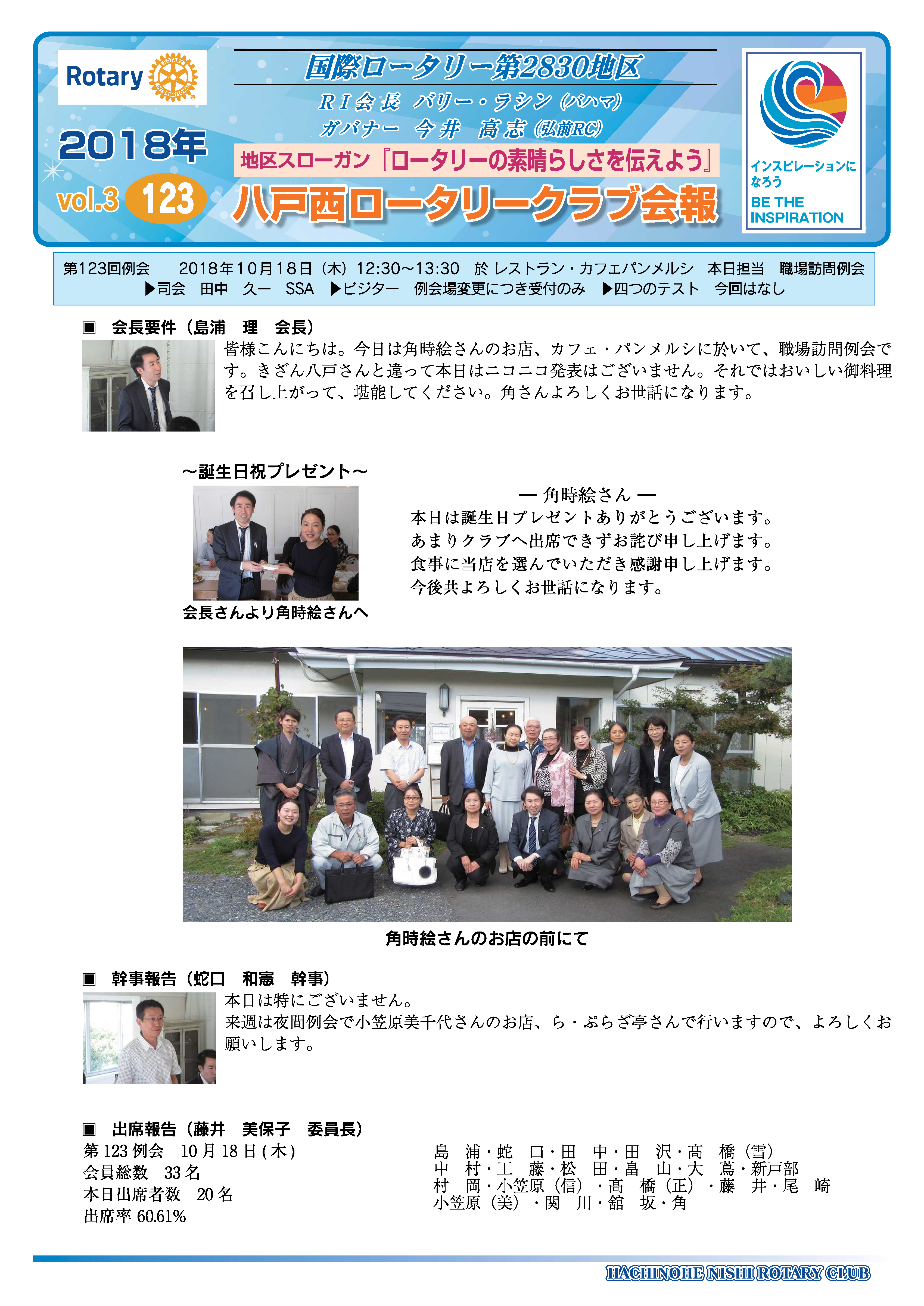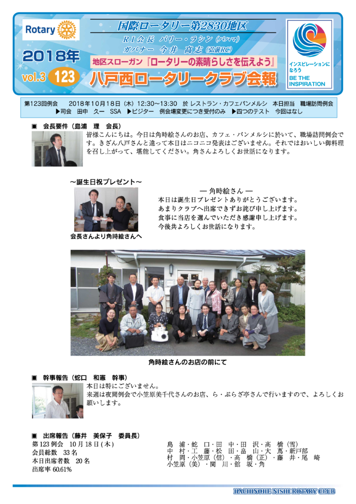 123回 八戸西ロータリークラブ会報