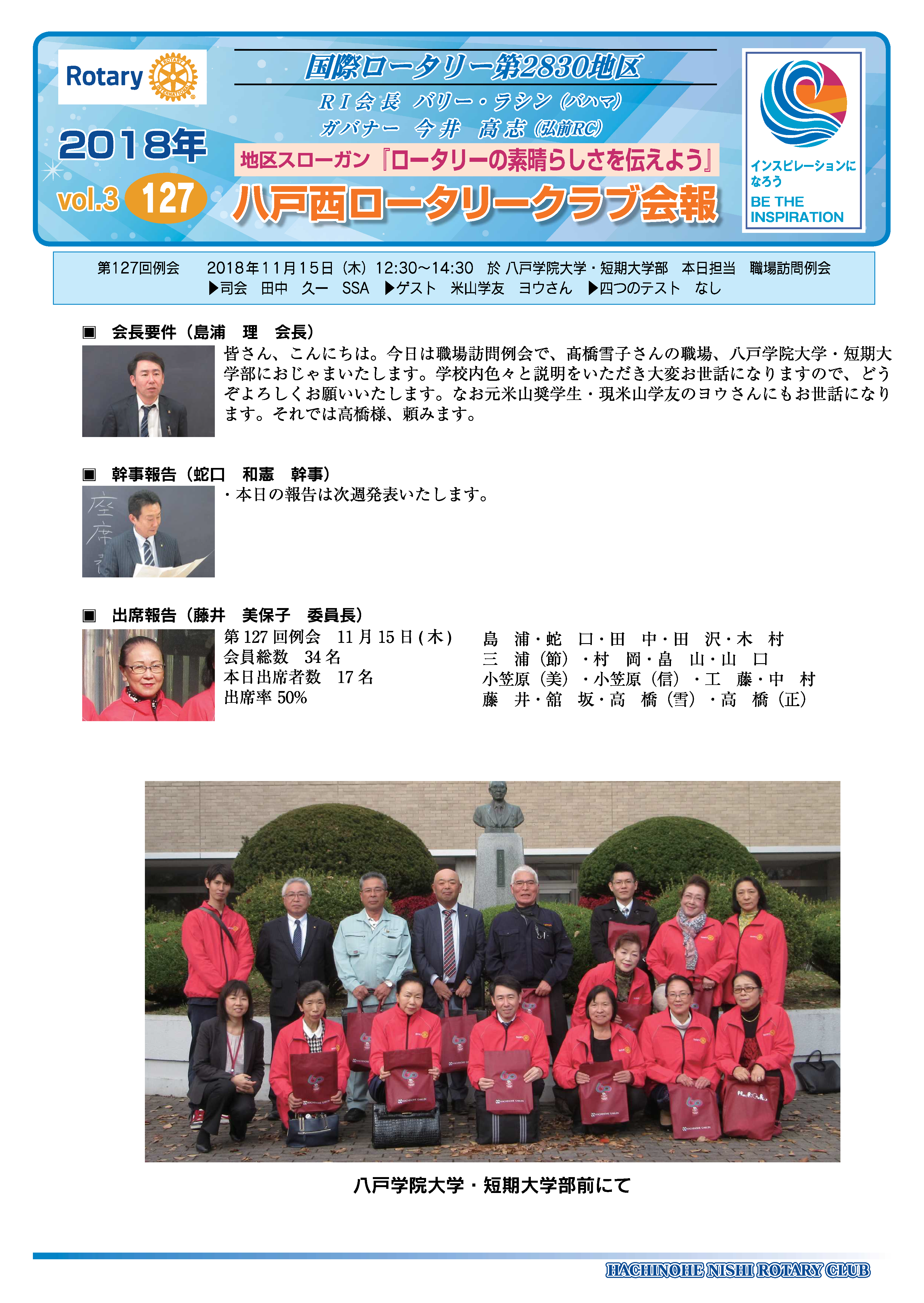 127回 八戸西ロータリークラブ会報