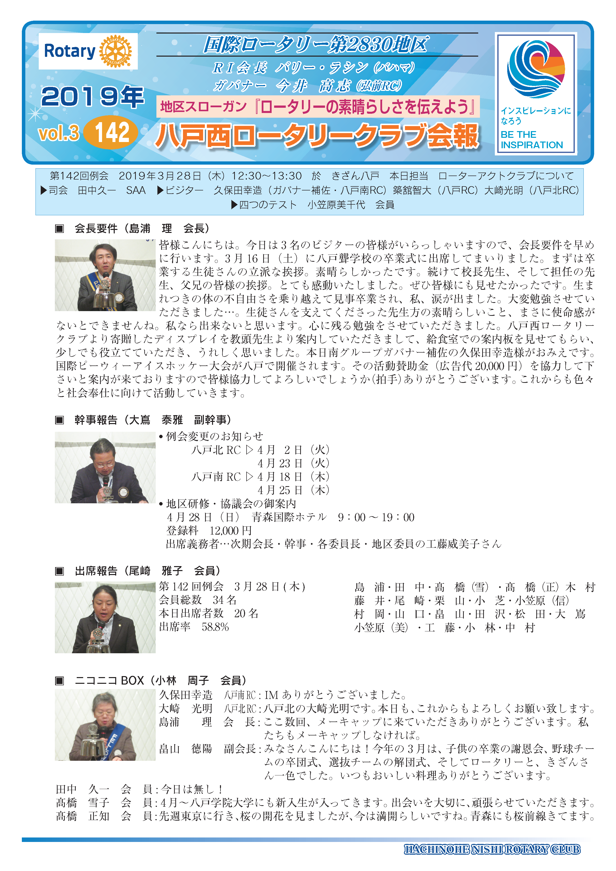 142回 八戸西ロータリークラブ会報