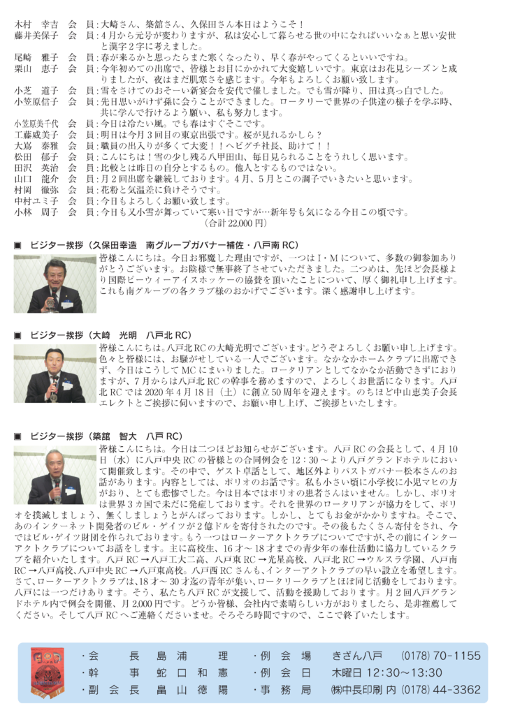 144回 八戸西ロータリークラブ会報