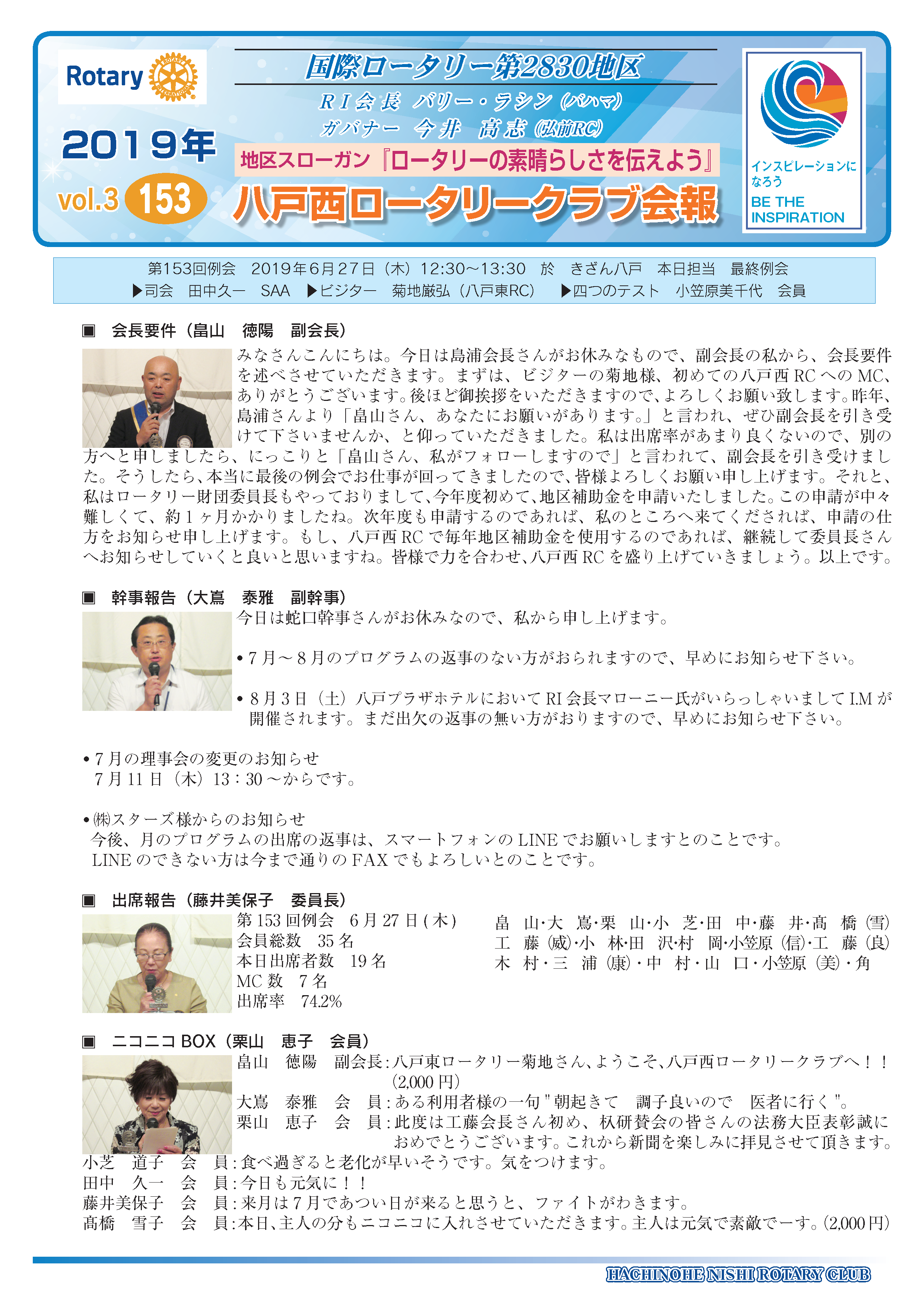 153回 八戸西ロータリークラブ会報