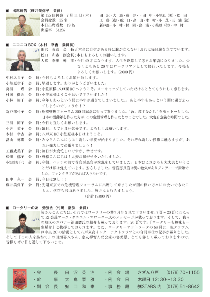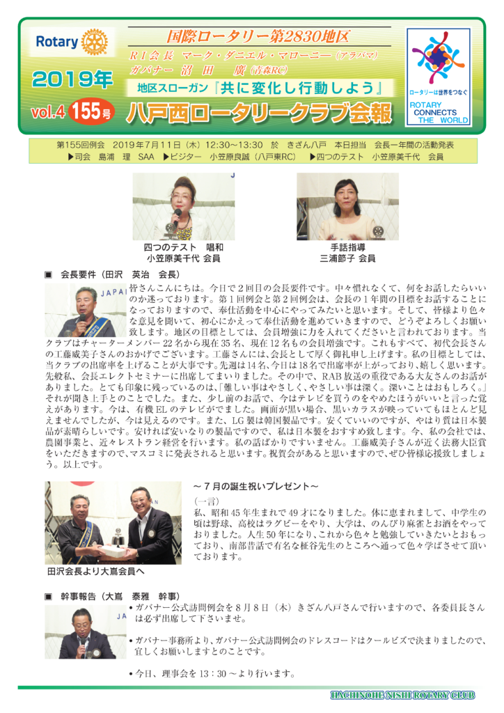 155回 八戸西ロータリークラブ会報