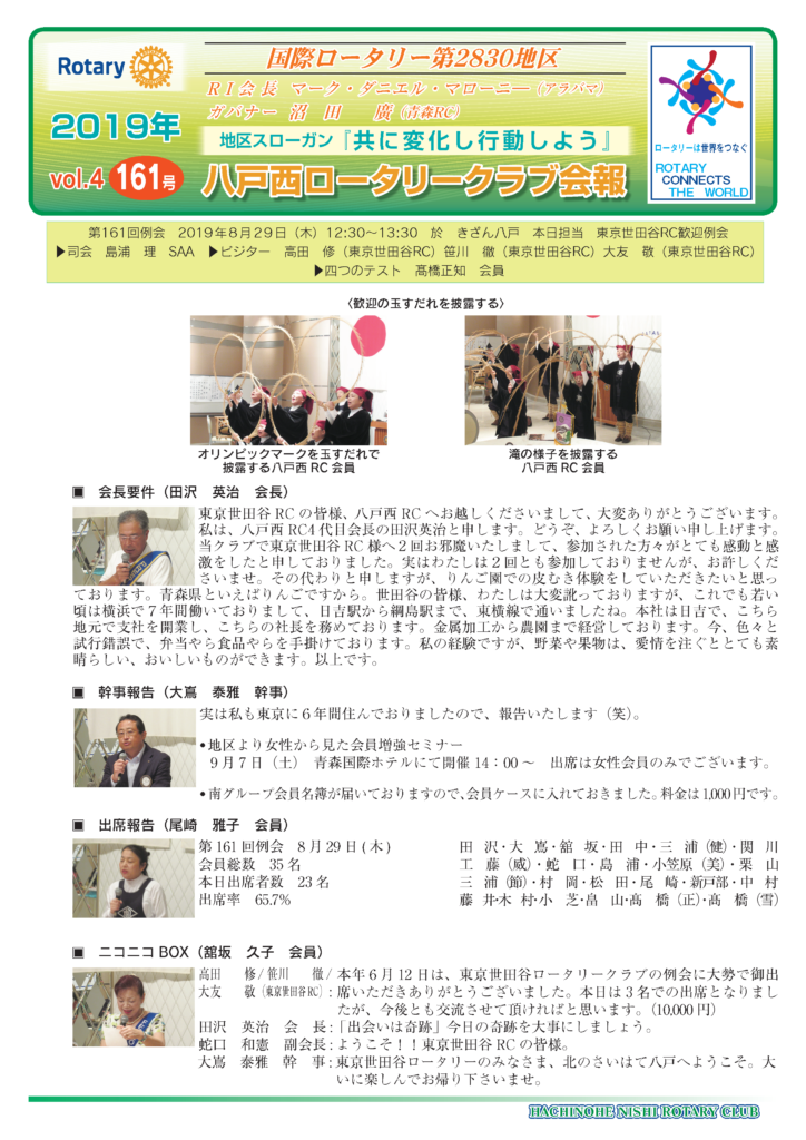 161回 八戸西ロータリークラブ会報