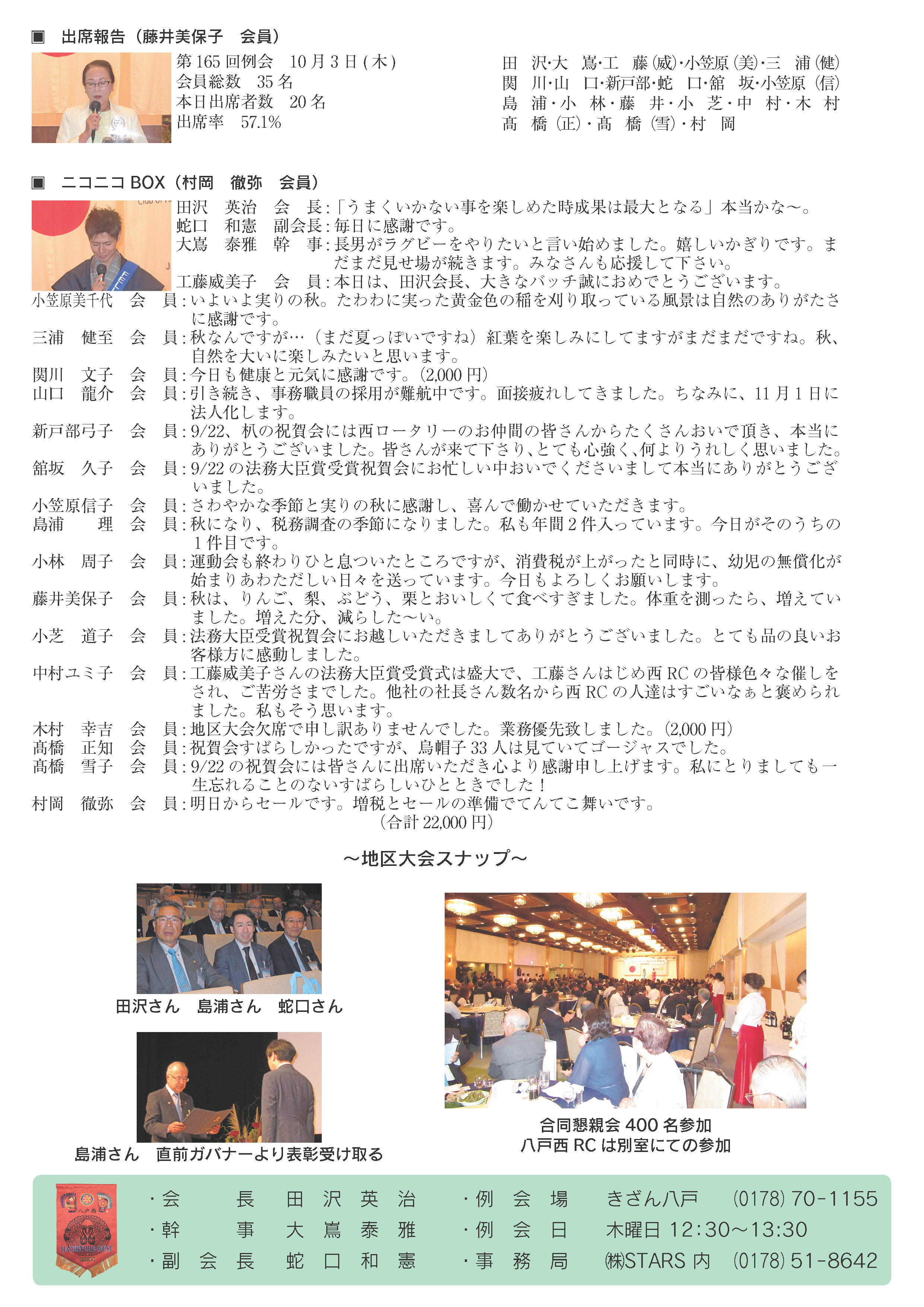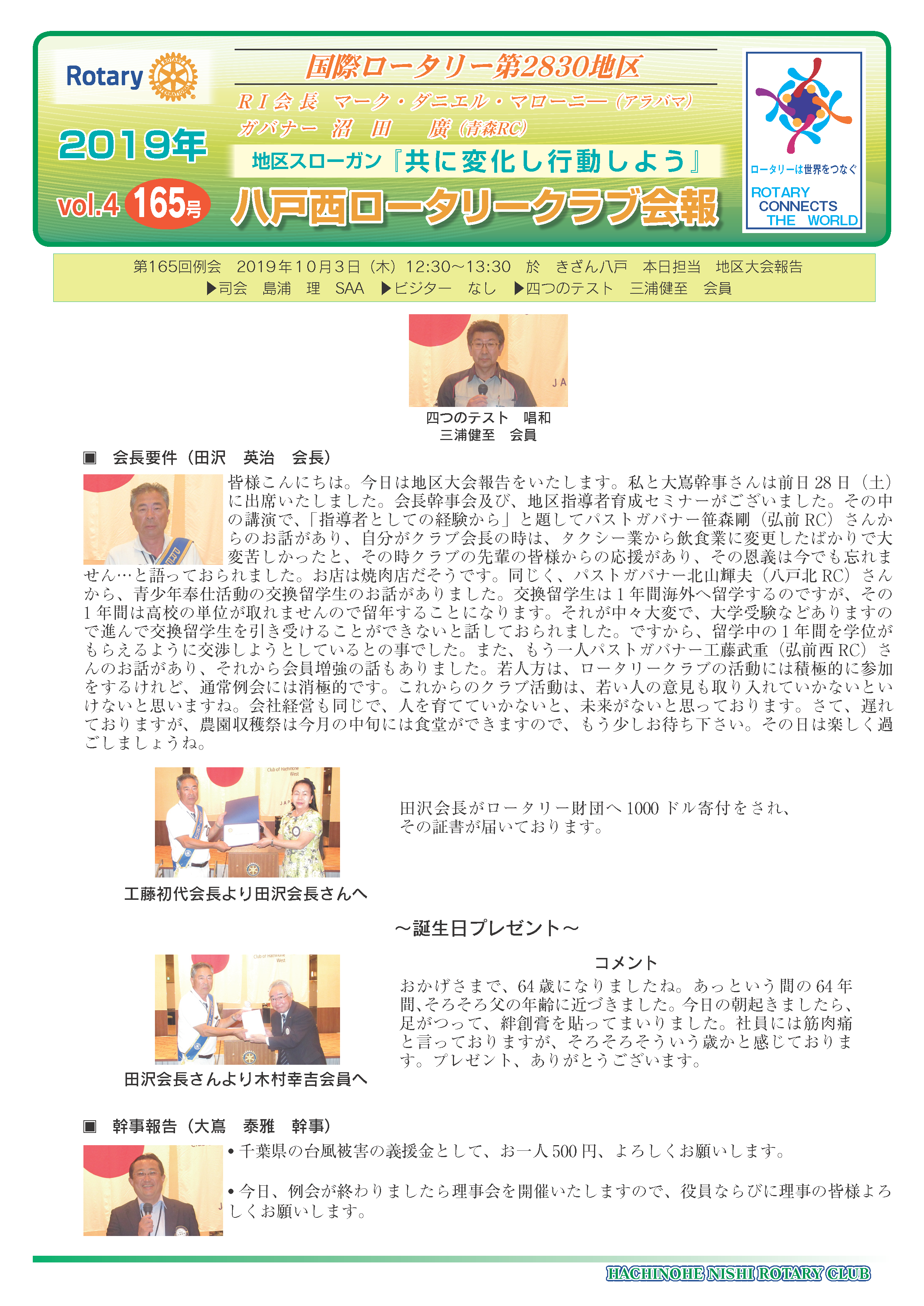 165回 八戸西ロータリークラブ会報