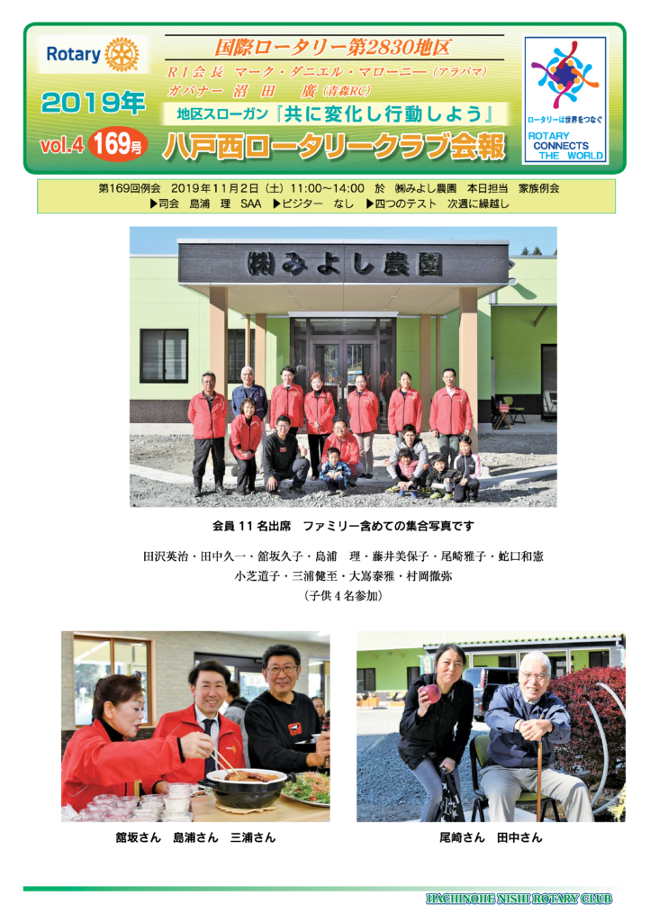 169回 八戸西ロータリークラブ会報