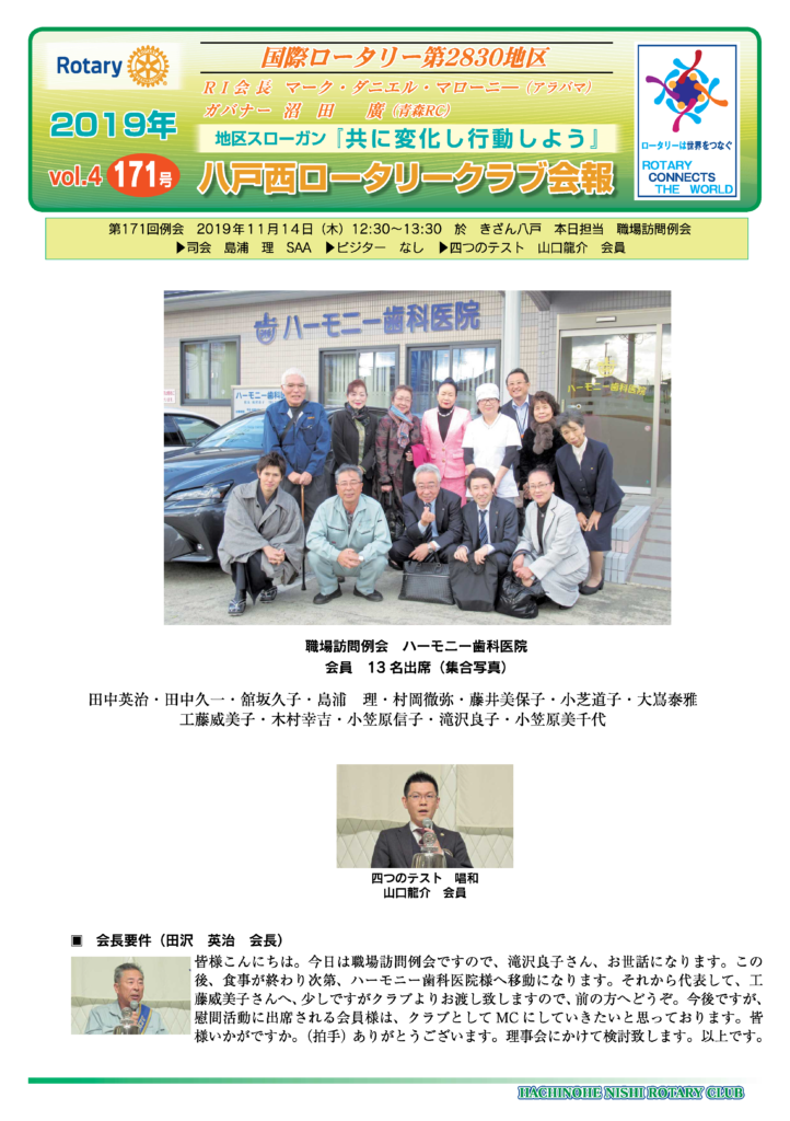 171回 八戸西ロータリークラブ会報