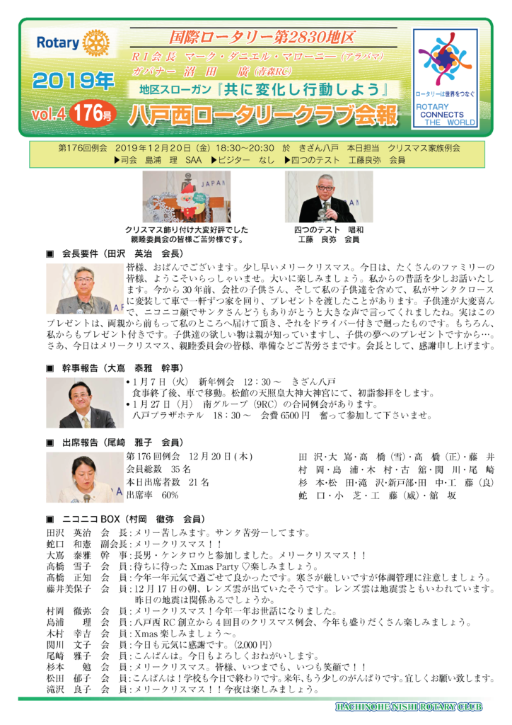 176回 八戸西ロータリークラブ会報