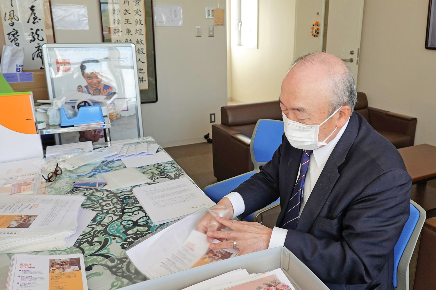 大学勤務の高橋正知・雪子会員が準備から配布まで、健康医療学部看護学科4年生のボランティアの皆さんと行いました。総勢500名の方々に配布し広報活動が出来ました。