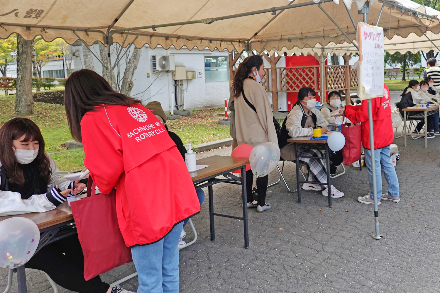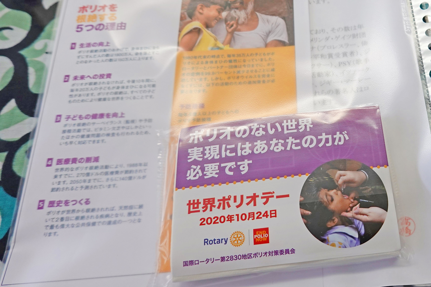2020年10月24日の世界ポリオデーの行事として、八戸学院大学の学園祭にてティッシュやポリオとロータリーに関するチラシを配布し広報活動をしました。