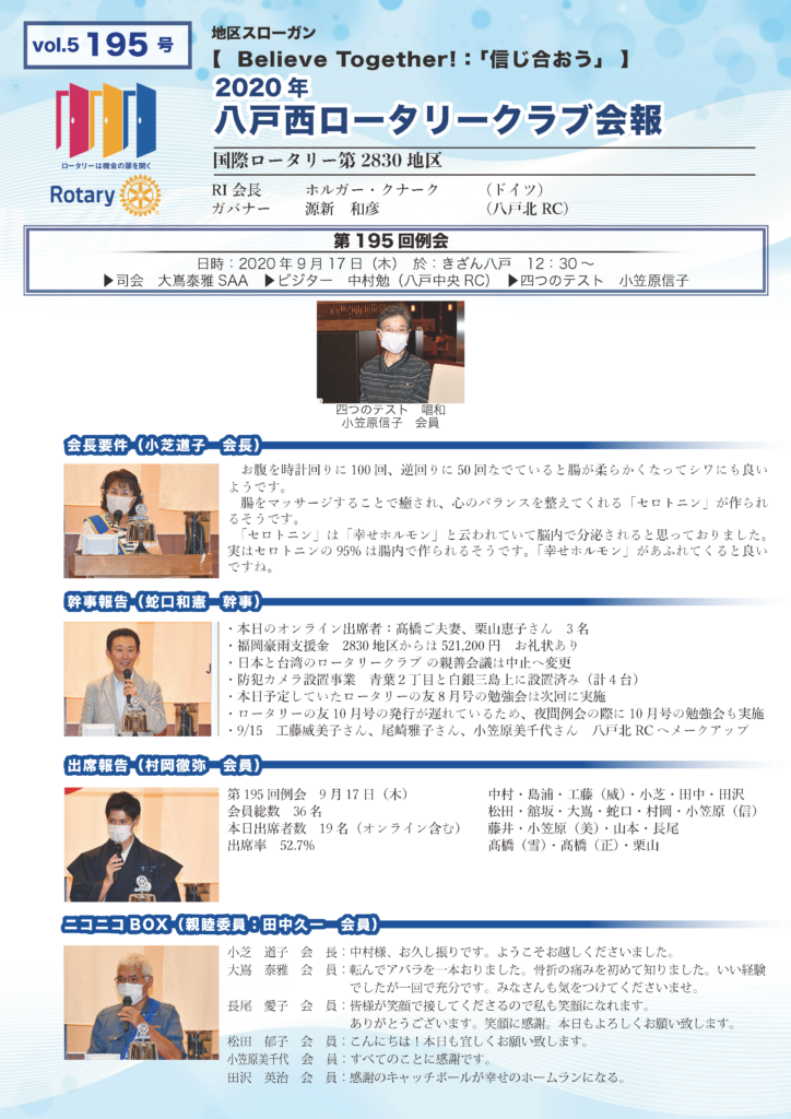 195号 八戸西ロータリークラブ会報