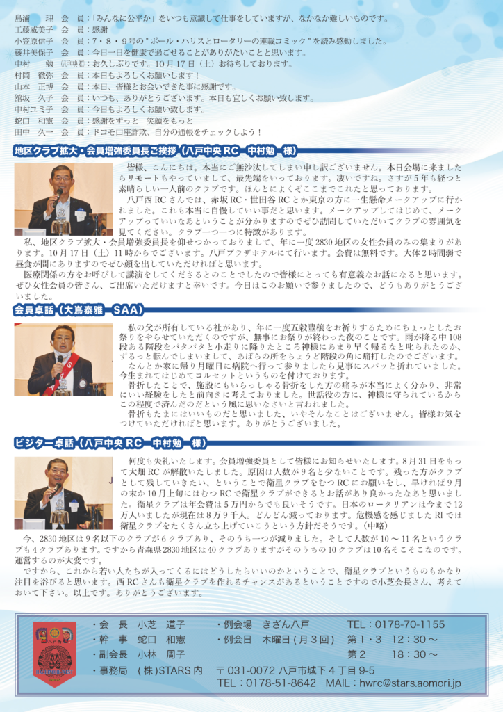 151回 八戸西ロータリークラブ会報