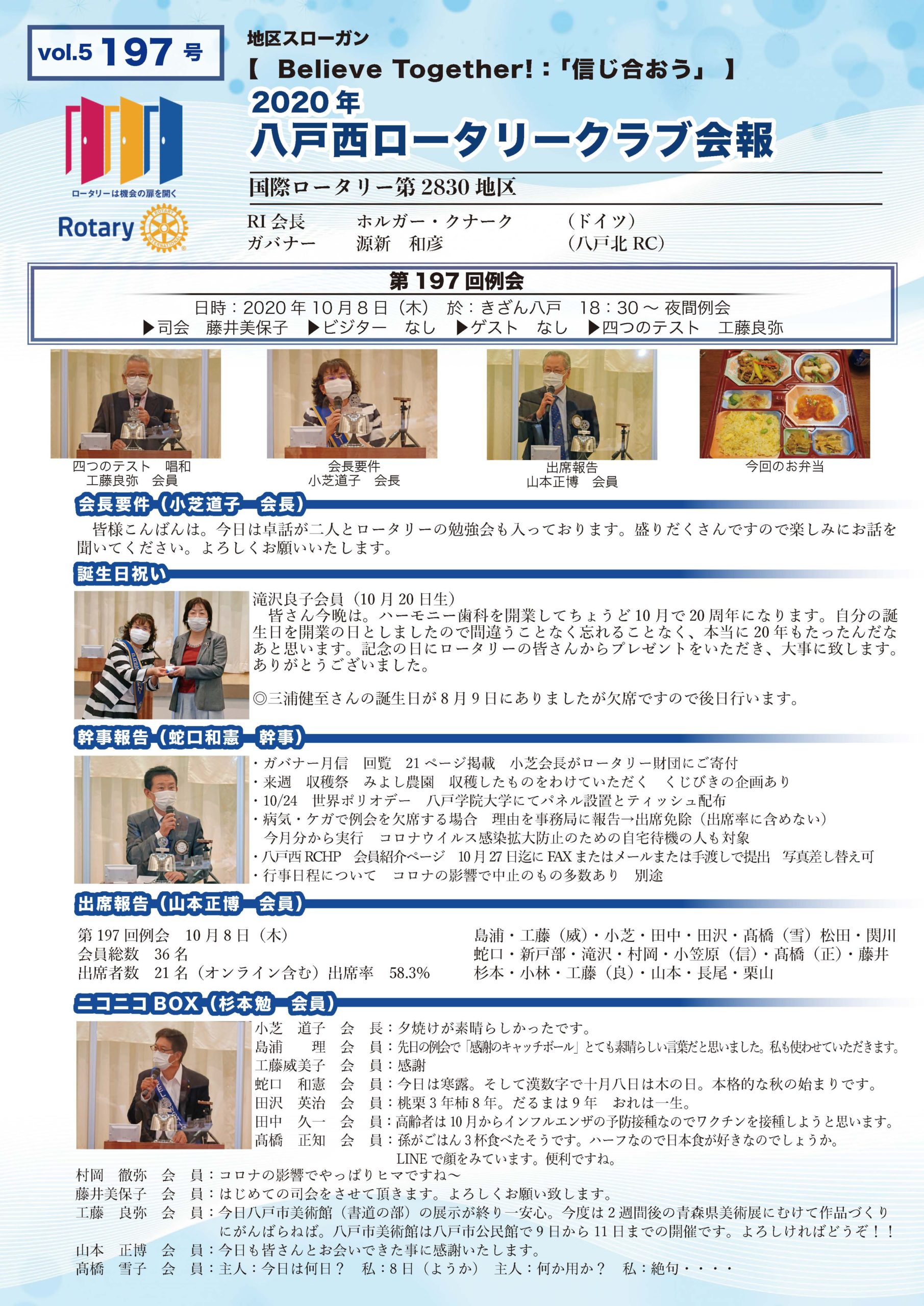 197号 八戸西ロータリークラブ会報