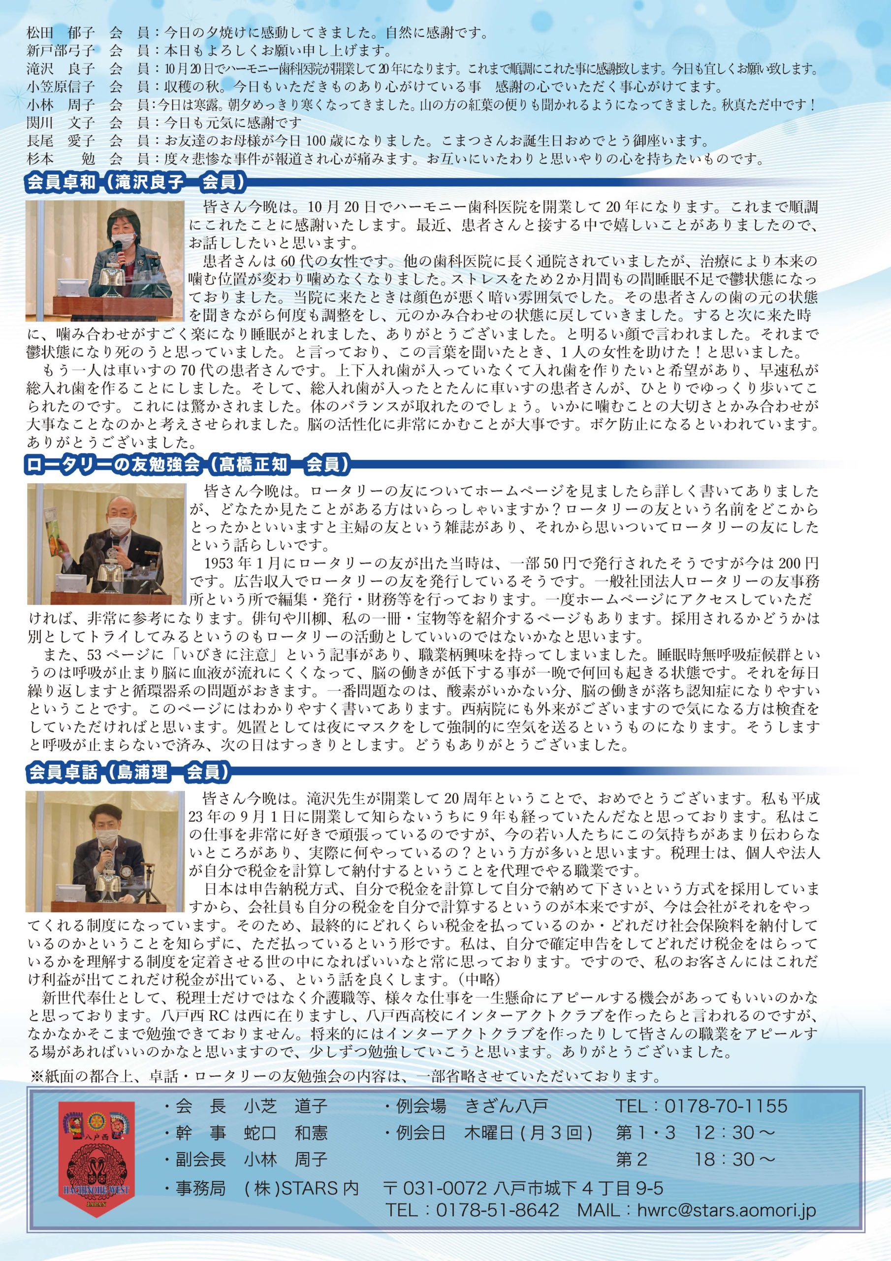213回 八戸西ロータリークラブ会報