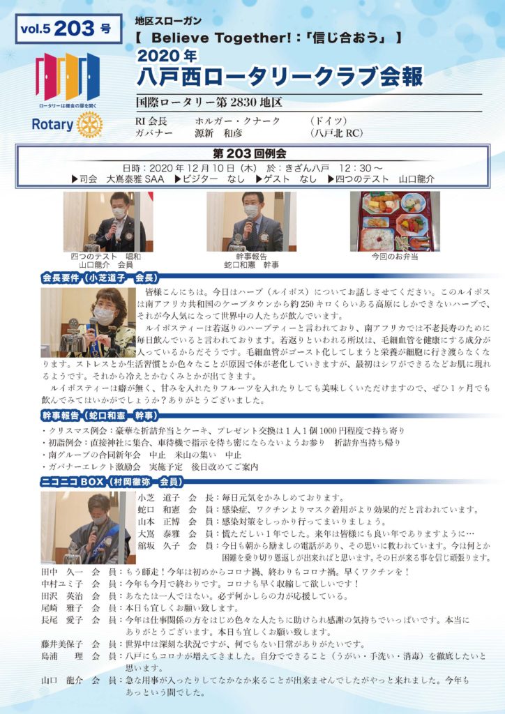 203号 八戸西ロータリークラブ会報