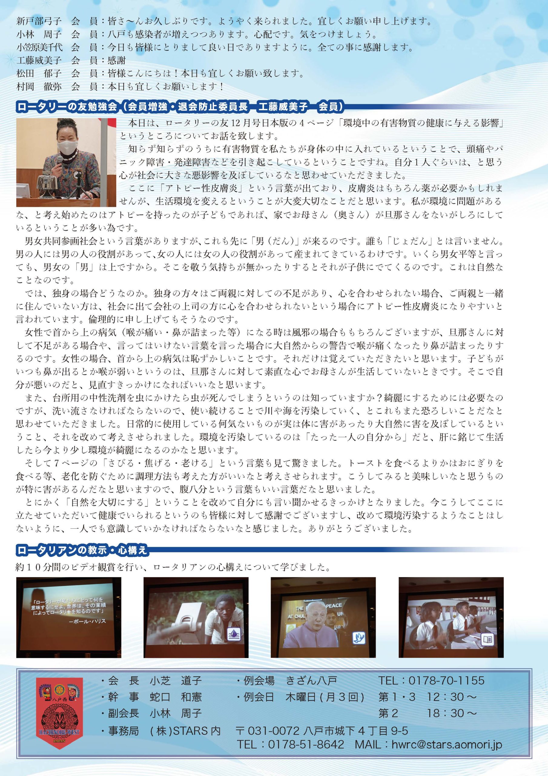 172回 八戸西ロータリークラブ会報