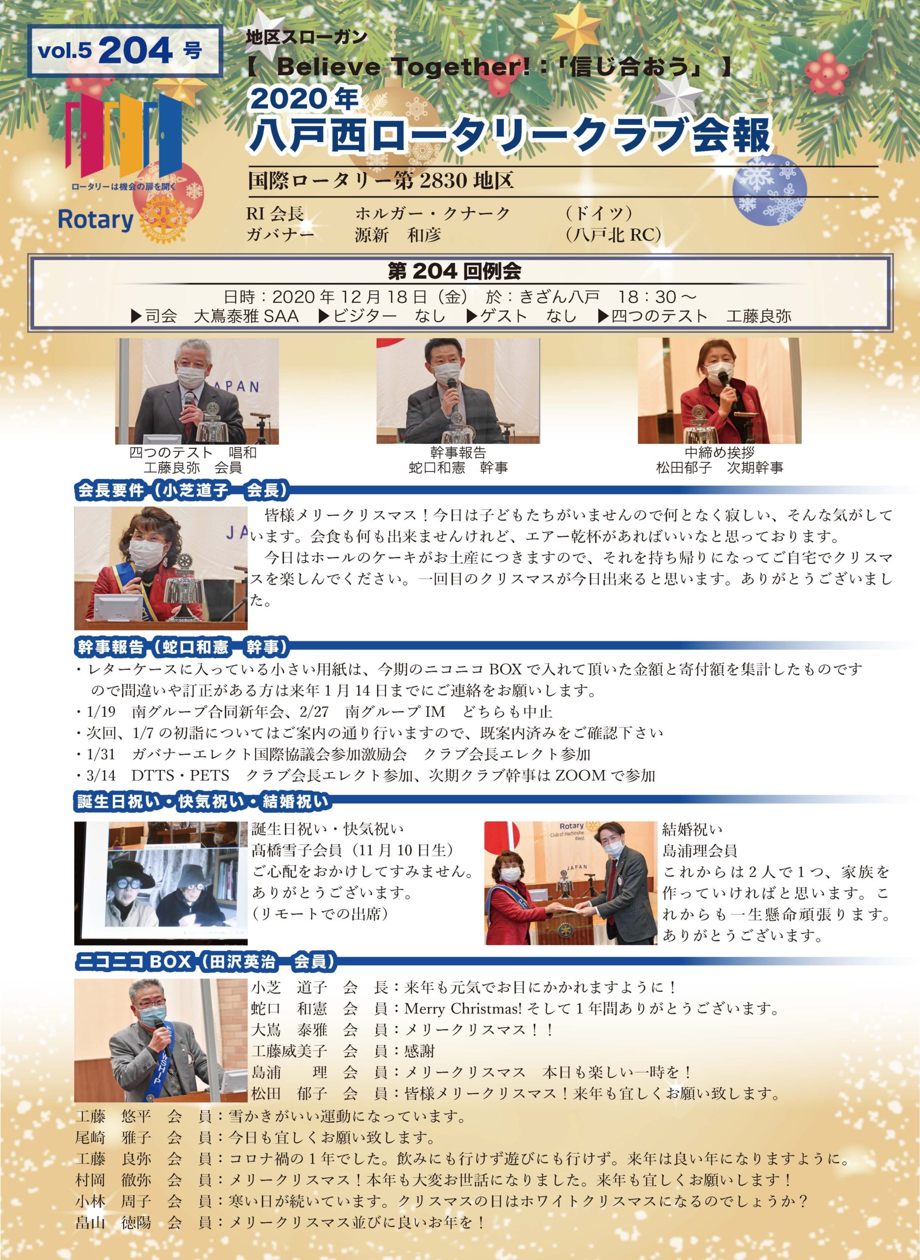 204号 八戸西ロータリークラブ会報