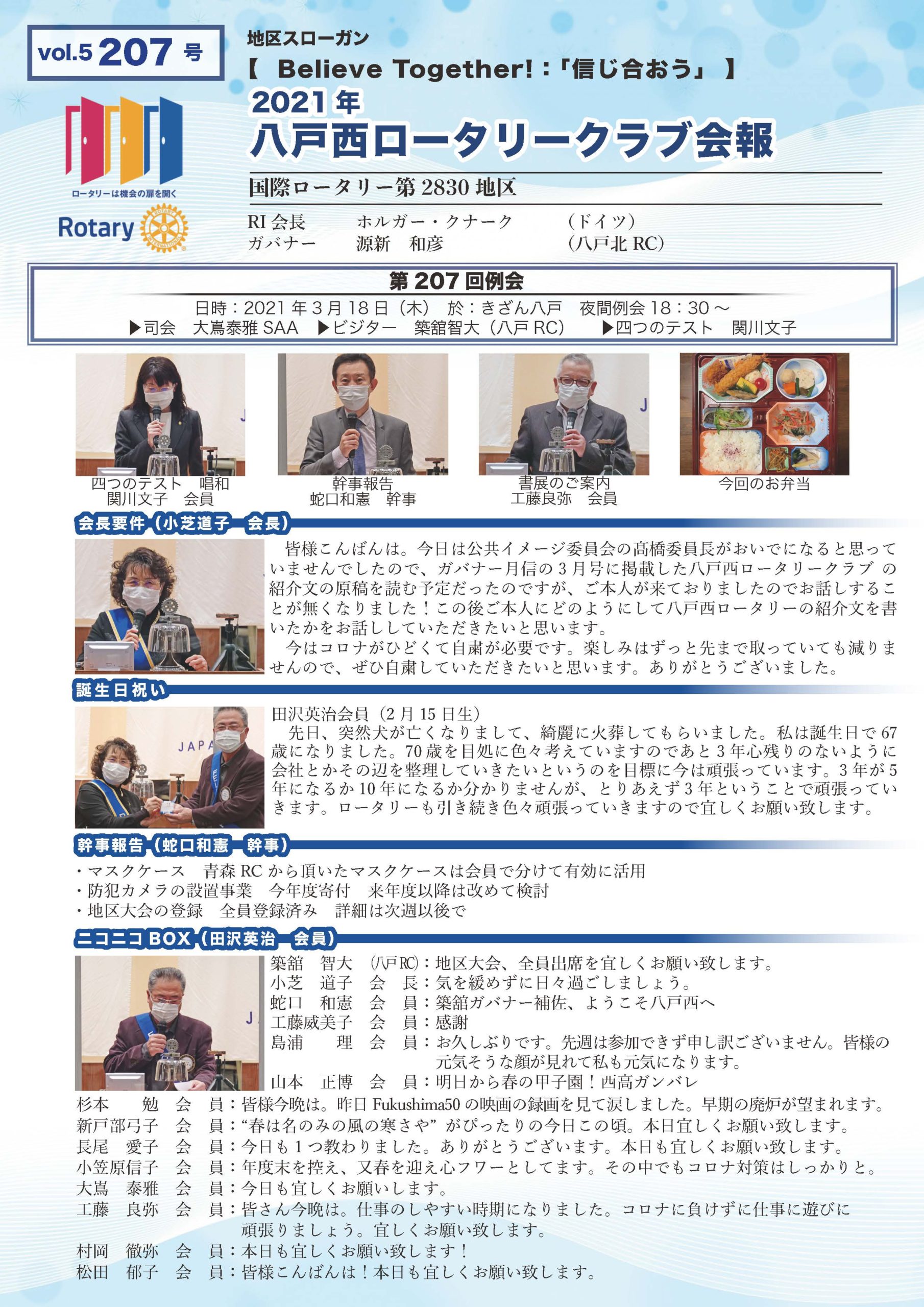 207号 八戸西ロータリークラブ会報