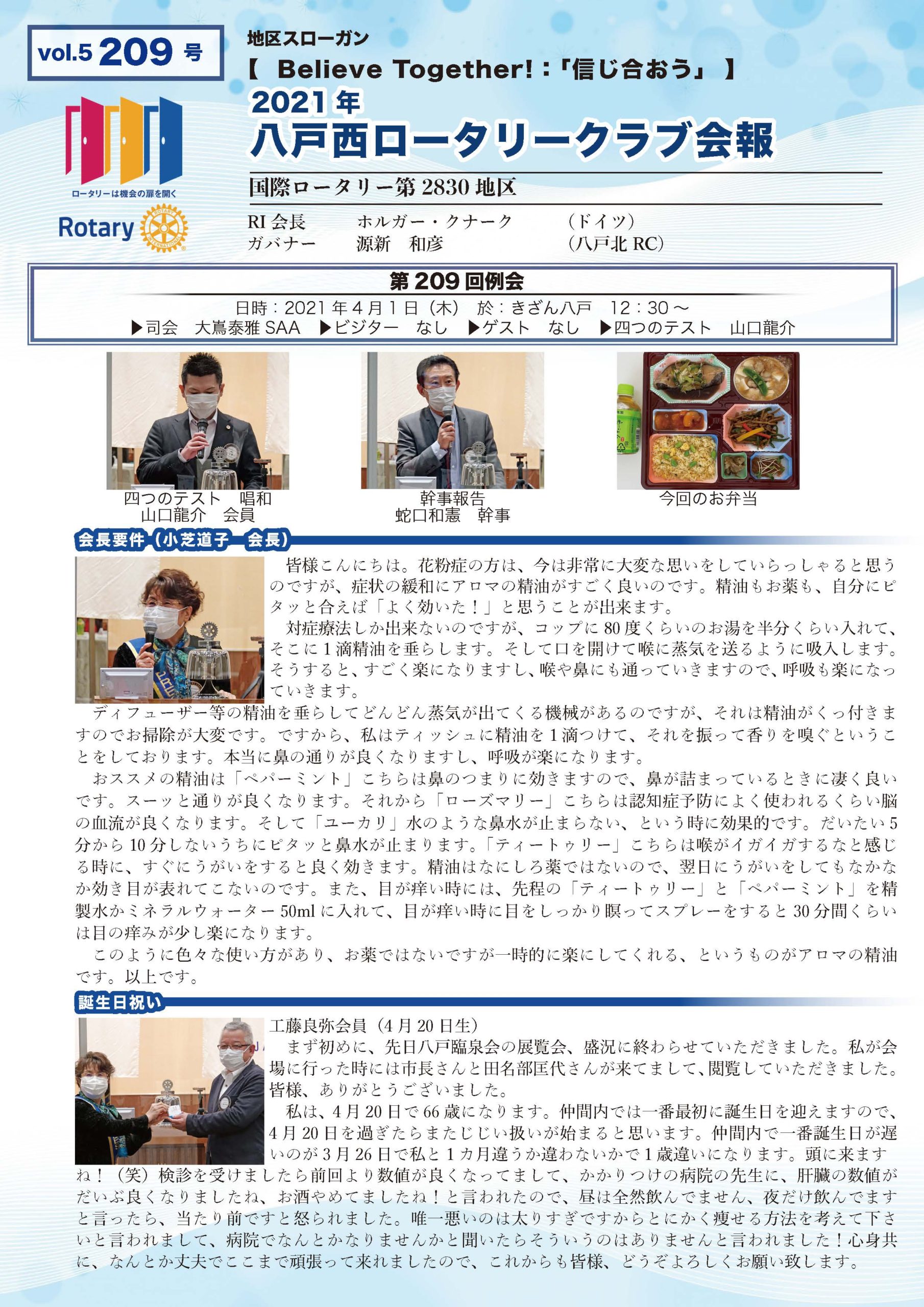209号 八戸西ロータリークラブ会報