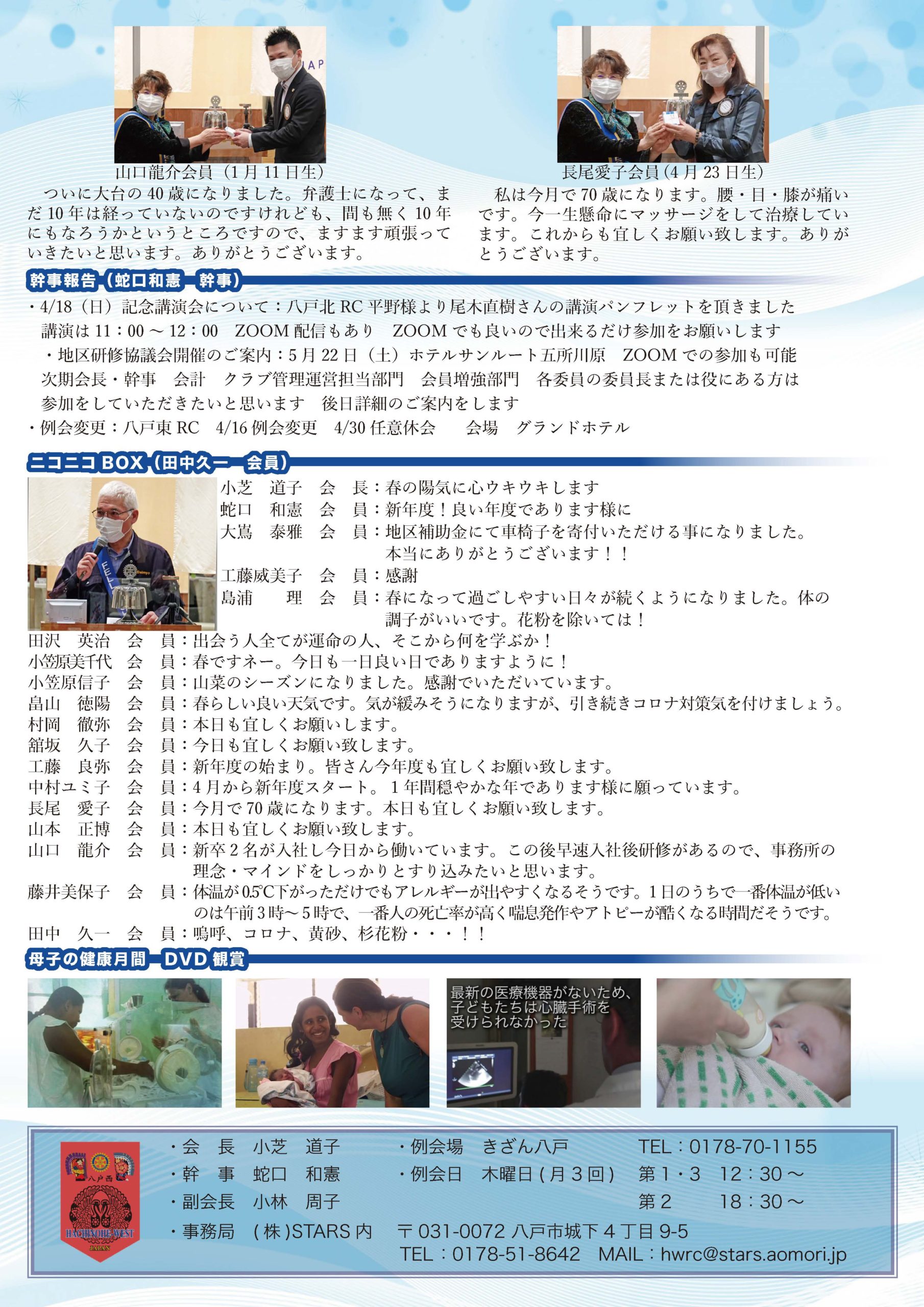 163回 八戸西ロータリークラブ会報