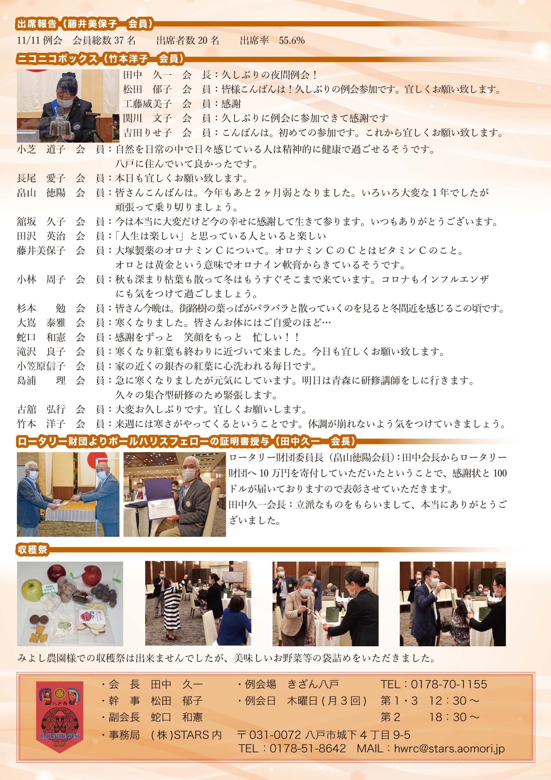 228回 八戸西ロータリークラブ会報