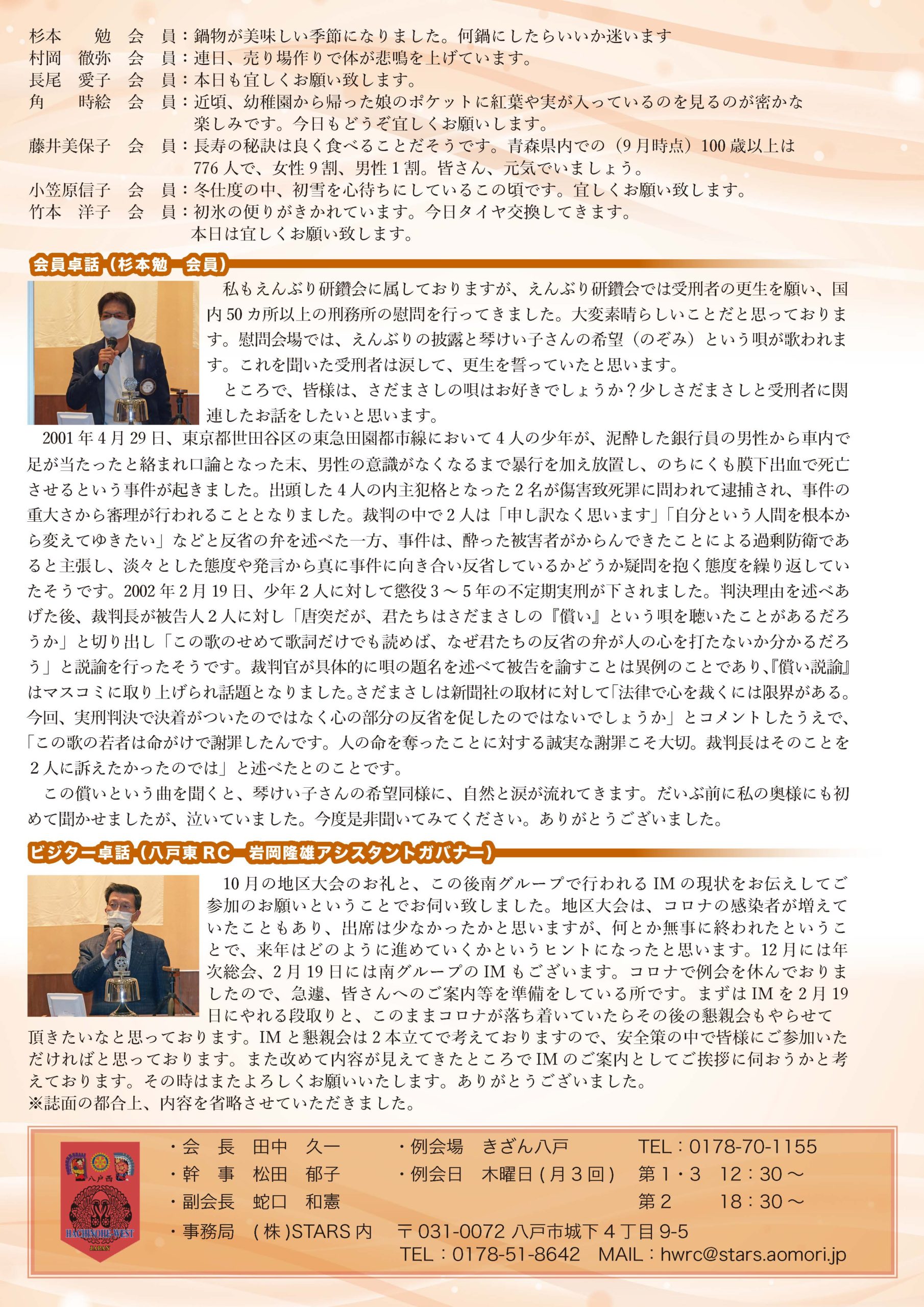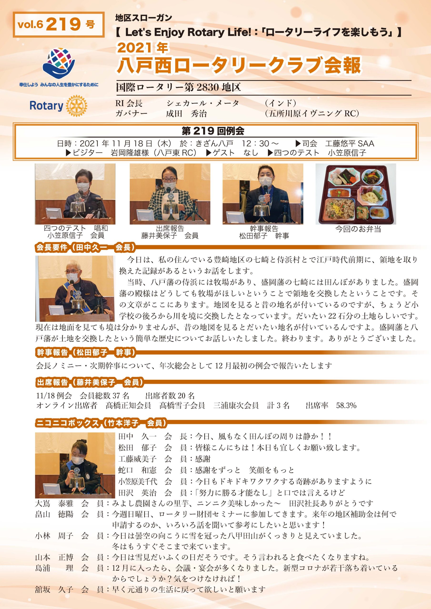 219回 八戸西ロータリークラブ会報