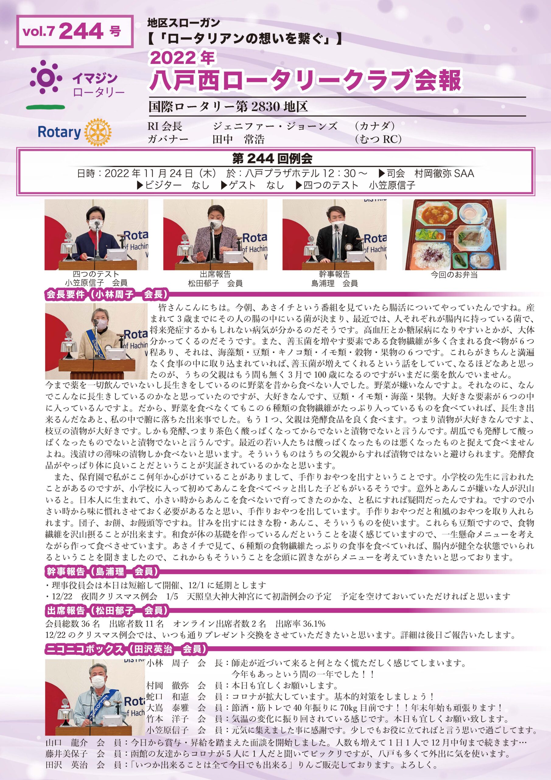 244回 八戸西ロータリークラブ会報誌
