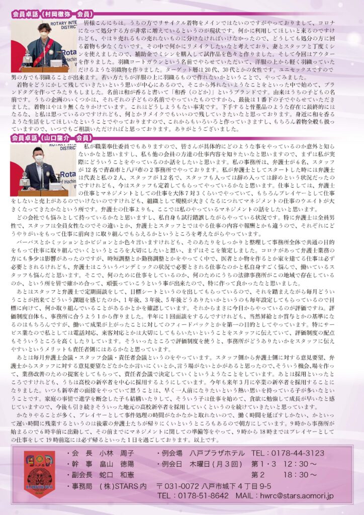 228回 八戸西ロータリークラブ会報