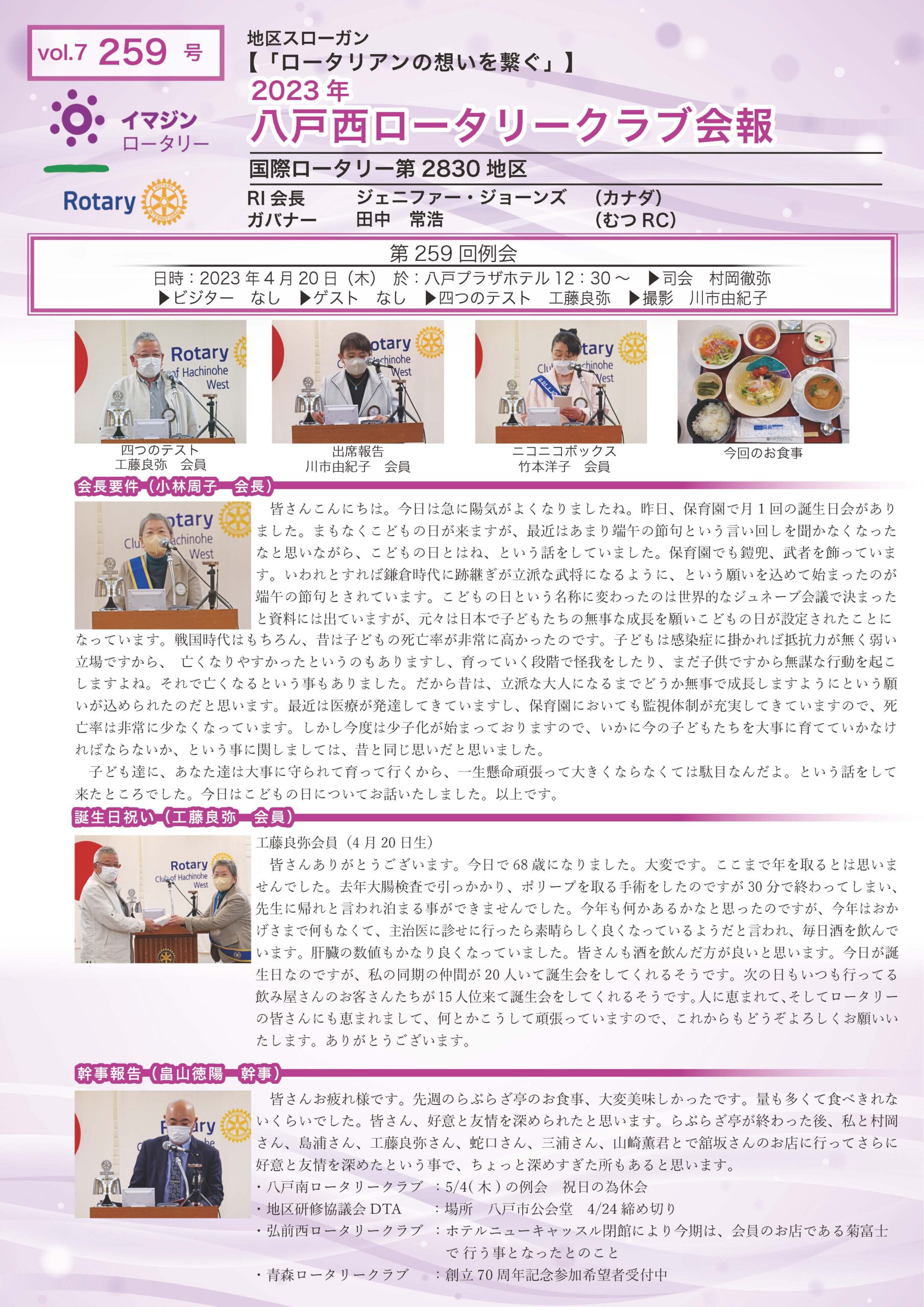 259回 八戸西ロータリークラブ会報誌