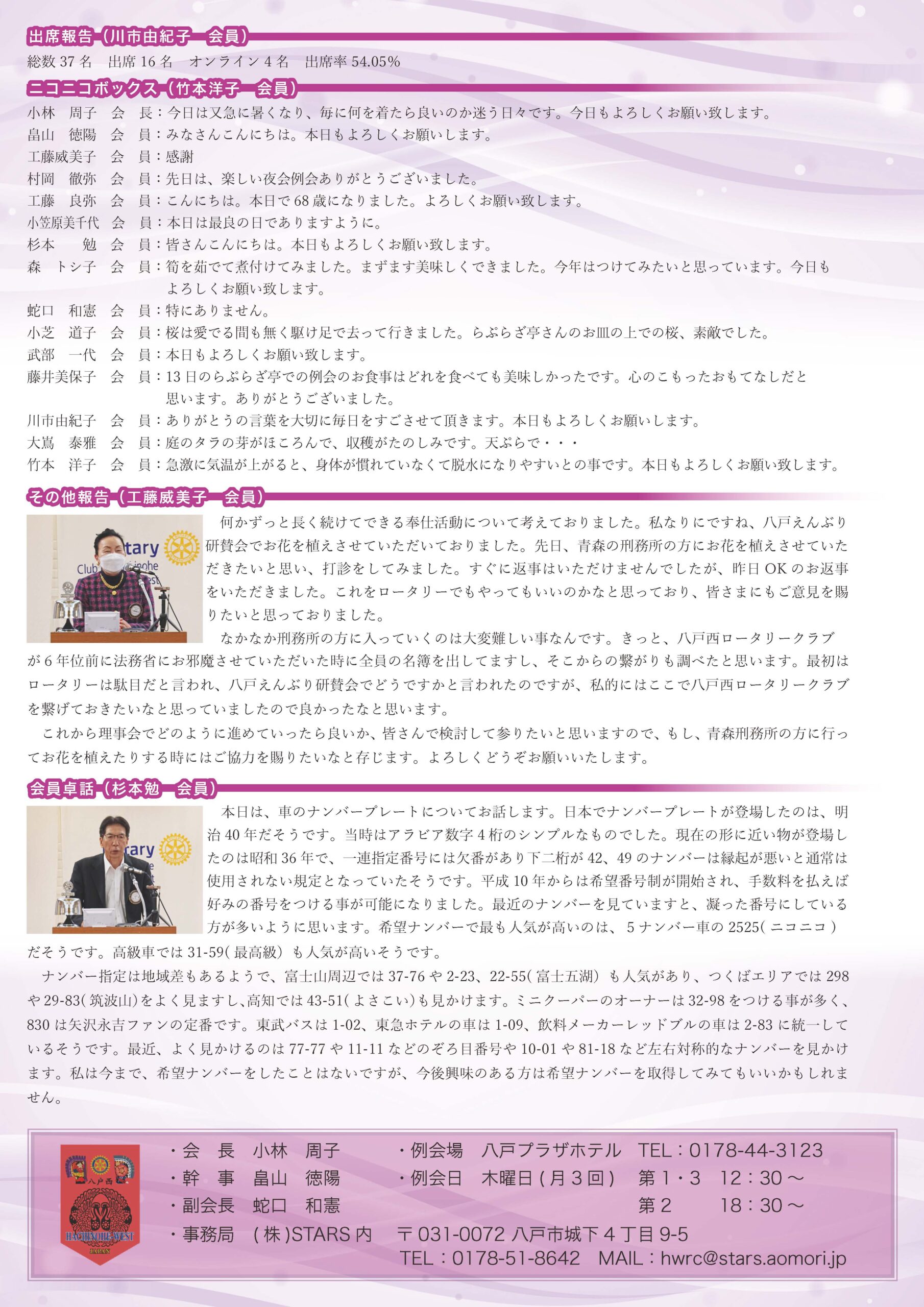148回 八戸西ロータリークラブ会報