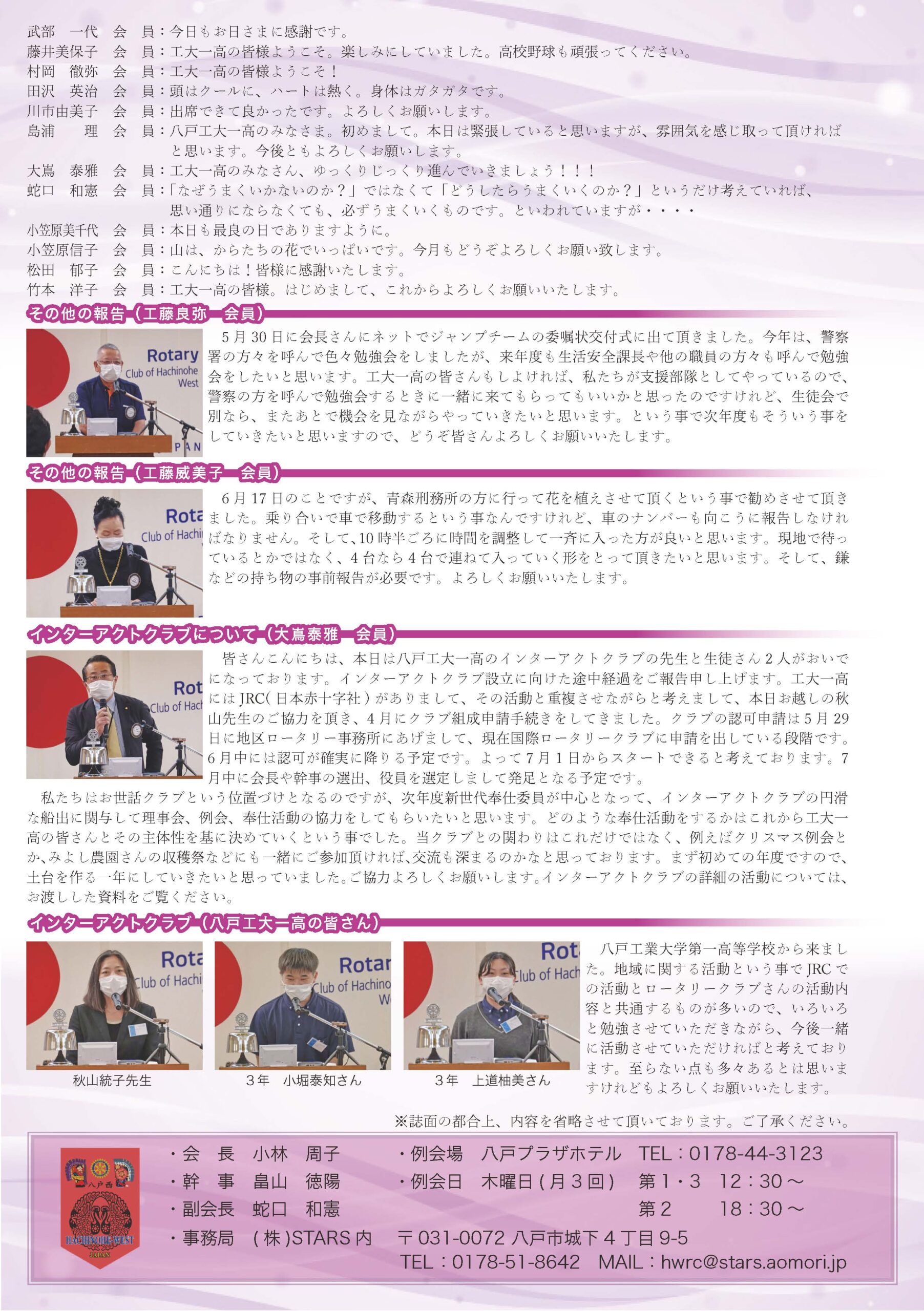177回 八戸西ロータリークラブ会報