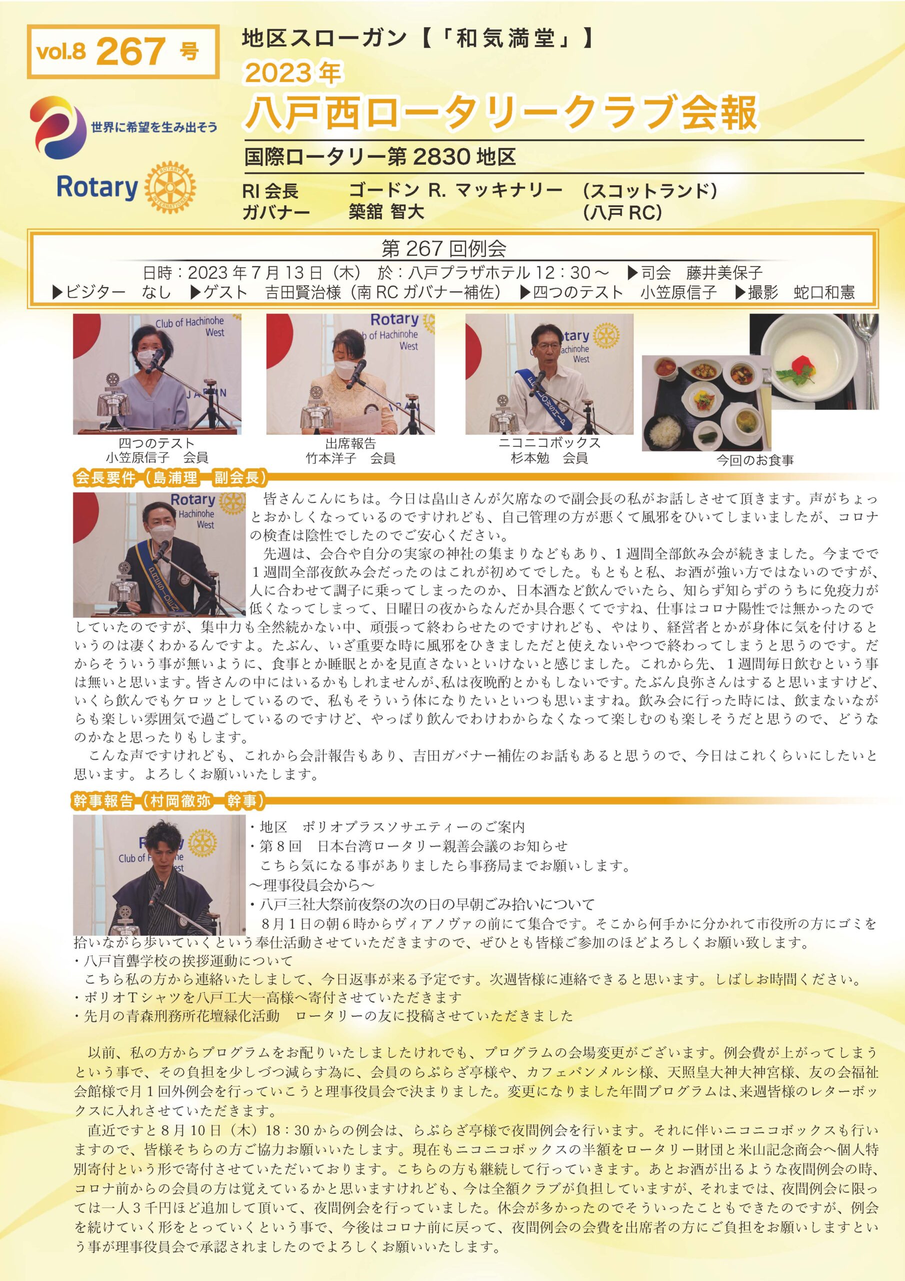267回号 八戸西ロータリークラブ会報誌