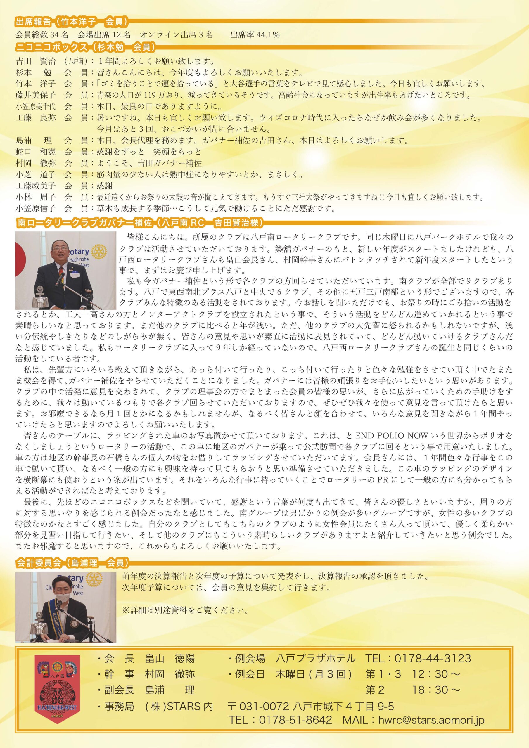 217回 八戸西ロータリークラブ会報