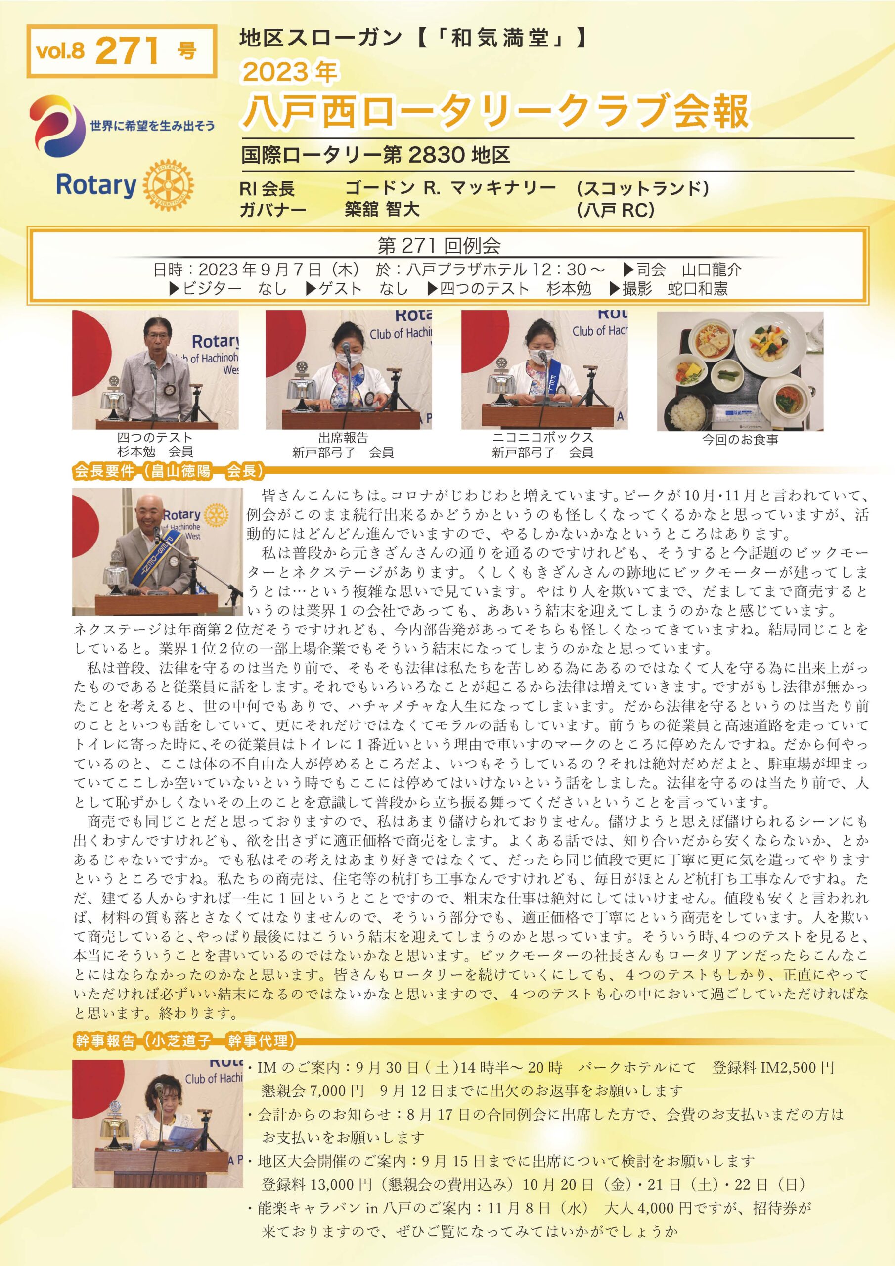 271回号 八戸西ロータリークラブ会報誌