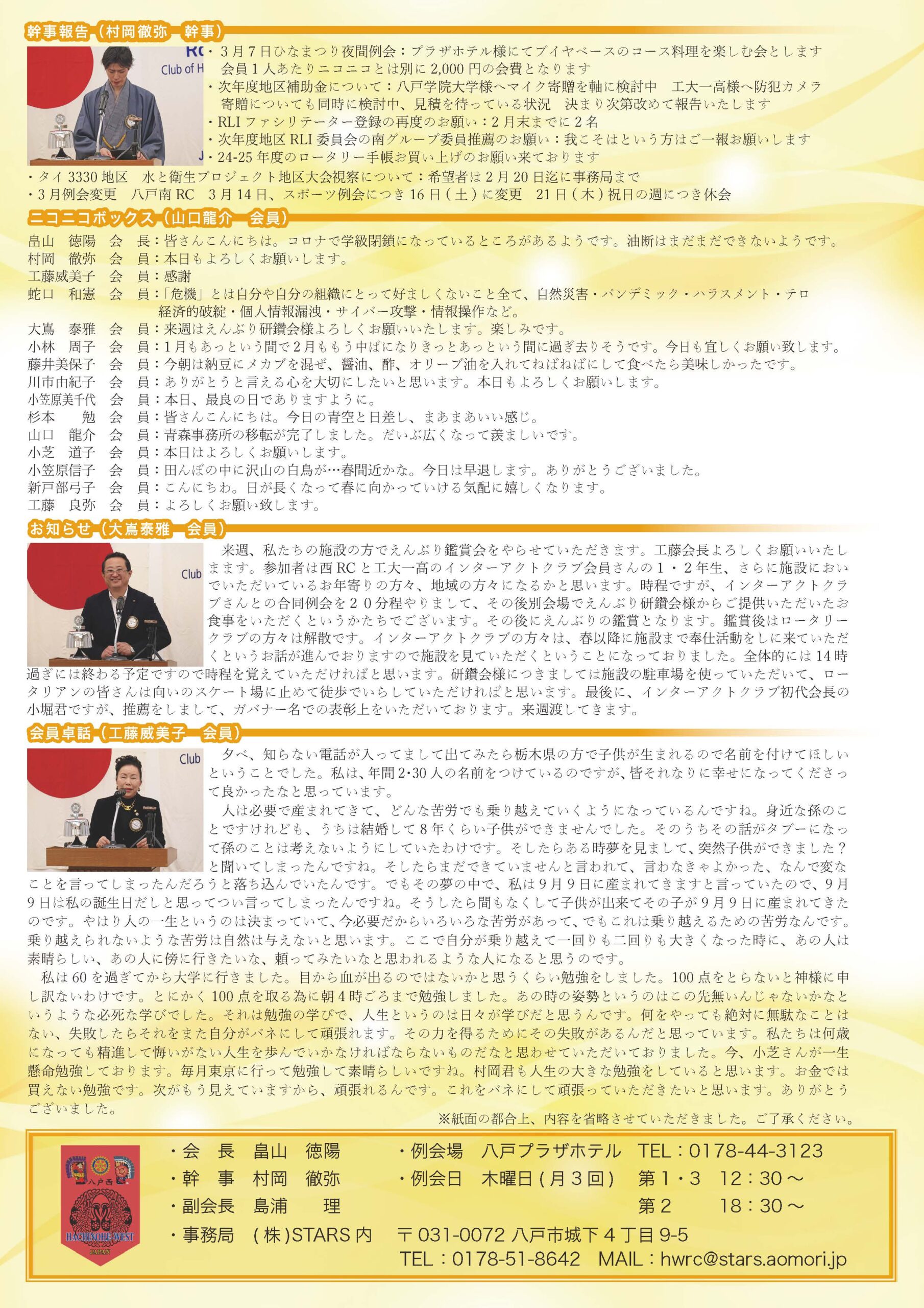 158回 八戸西ロータリークラブ会報