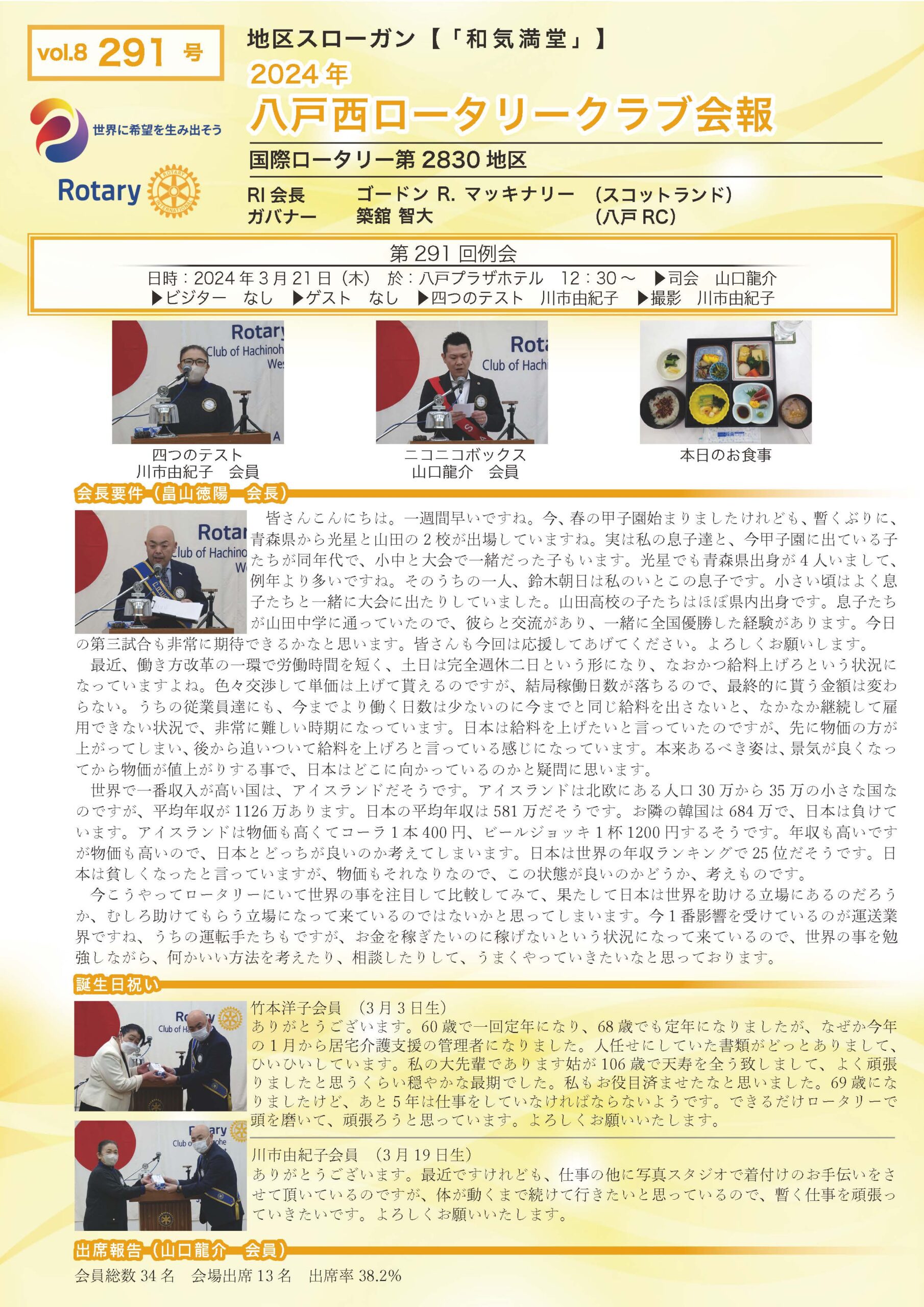 291回号 八戸西ロータリークラブ会報誌