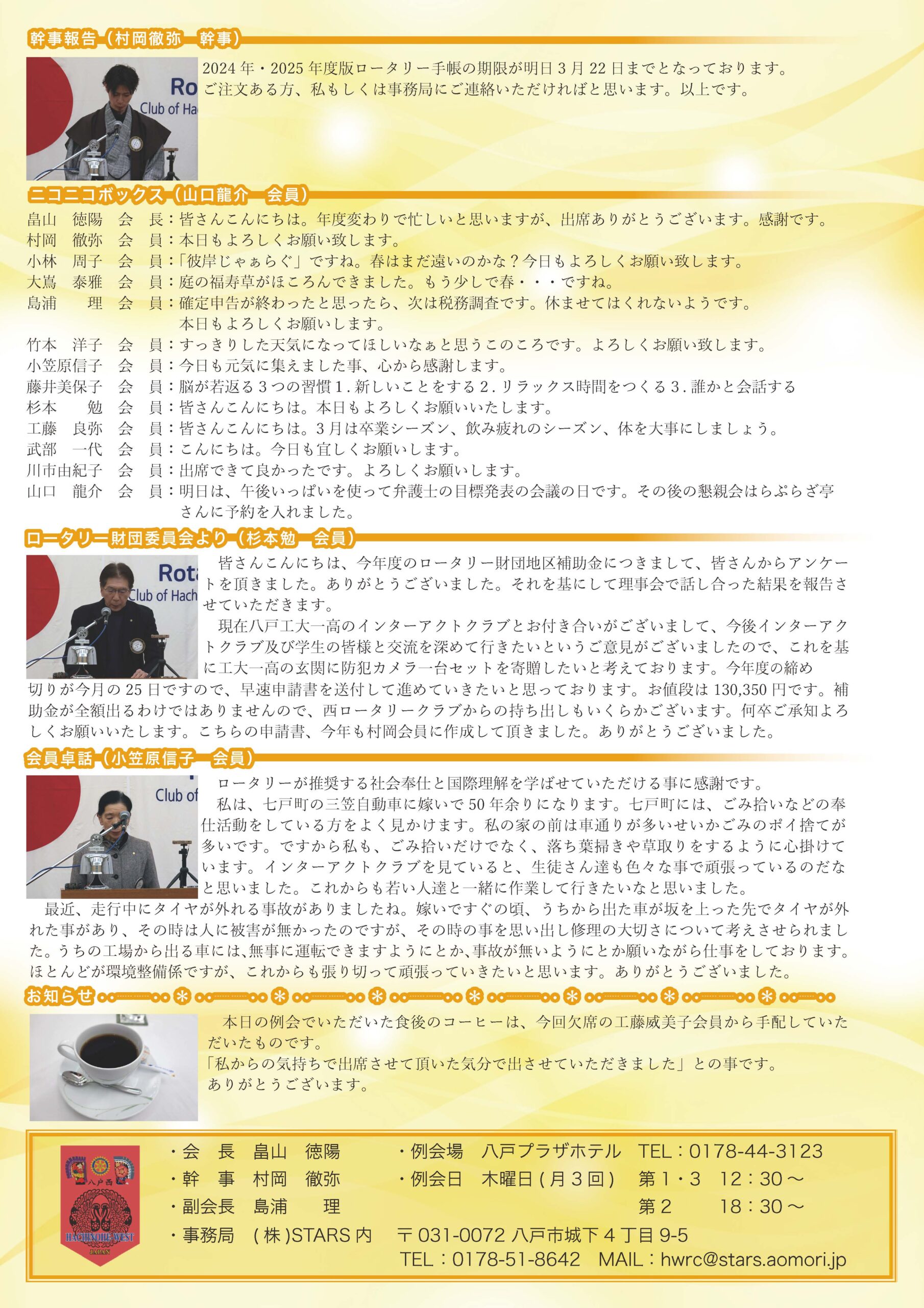 177回 八戸西ロータリークラブ会報
