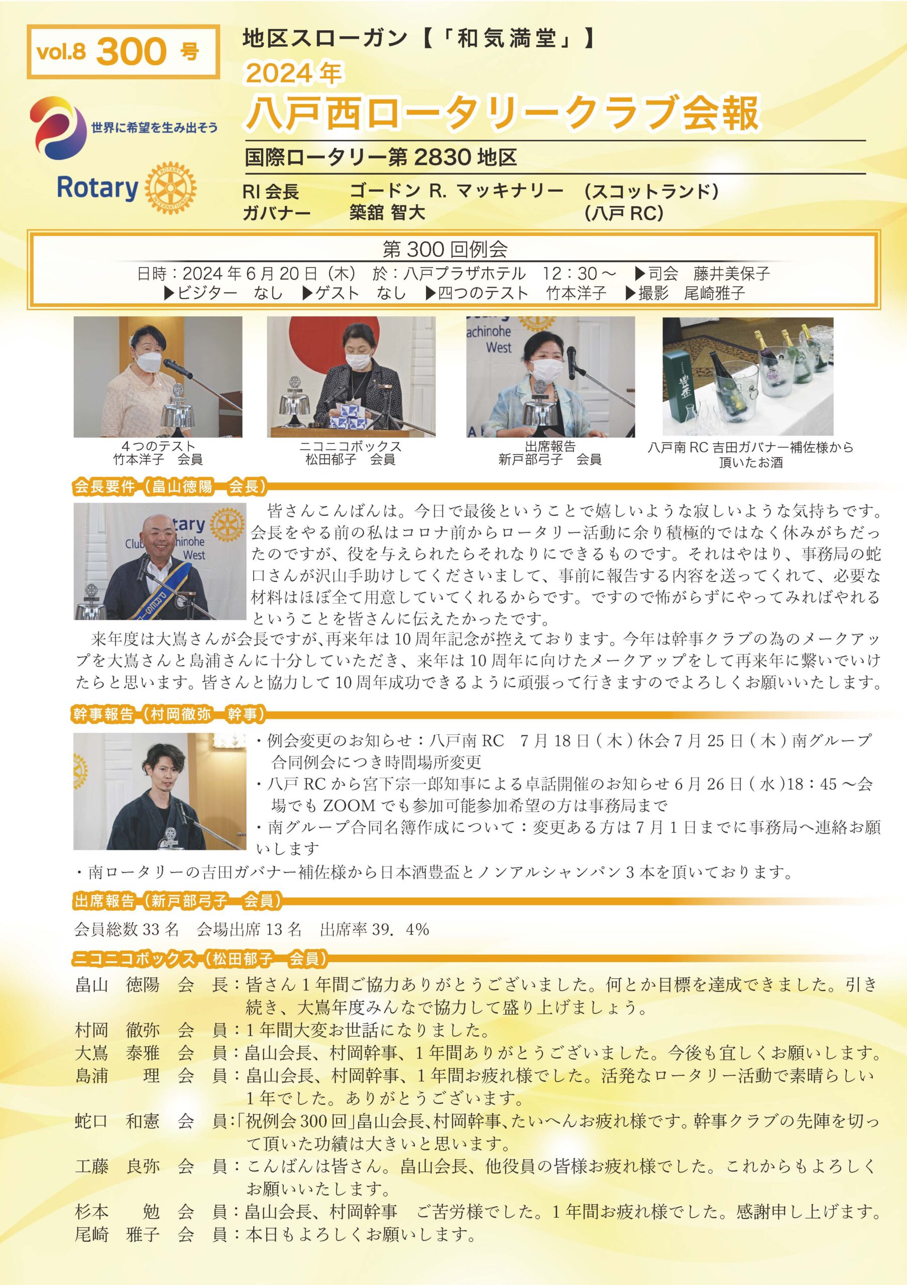 300回号 八戸西ロータリークラブ会報誌