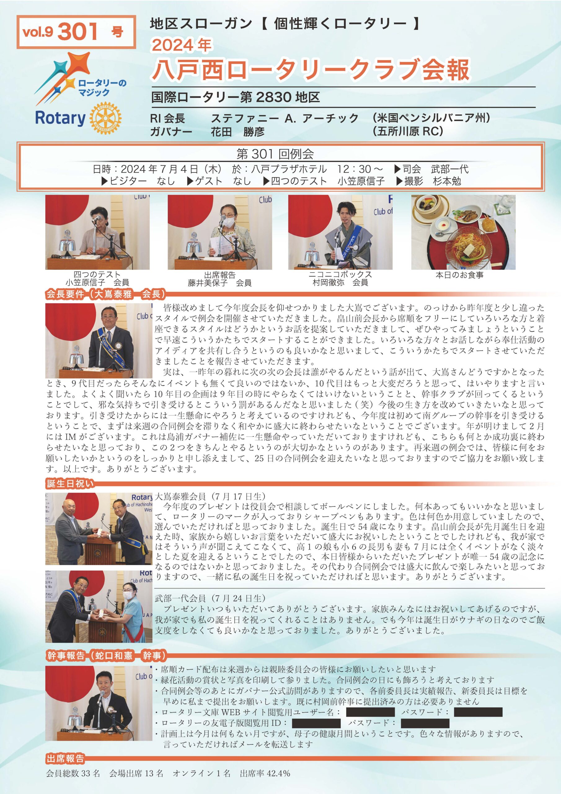 301回号 八戸西ロータリークラブ会報誌
