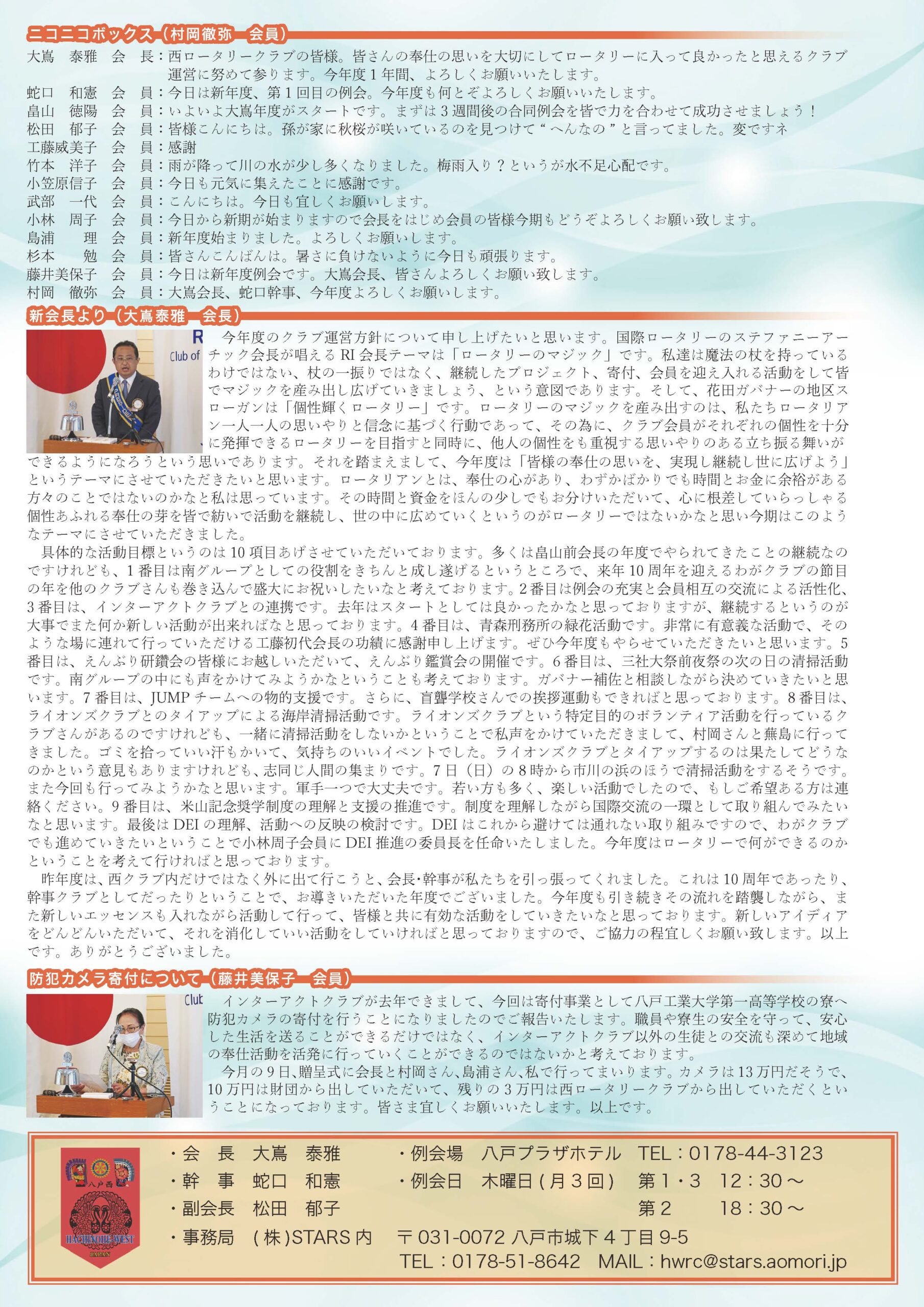 134回 八戸西ロータリークラブ会報