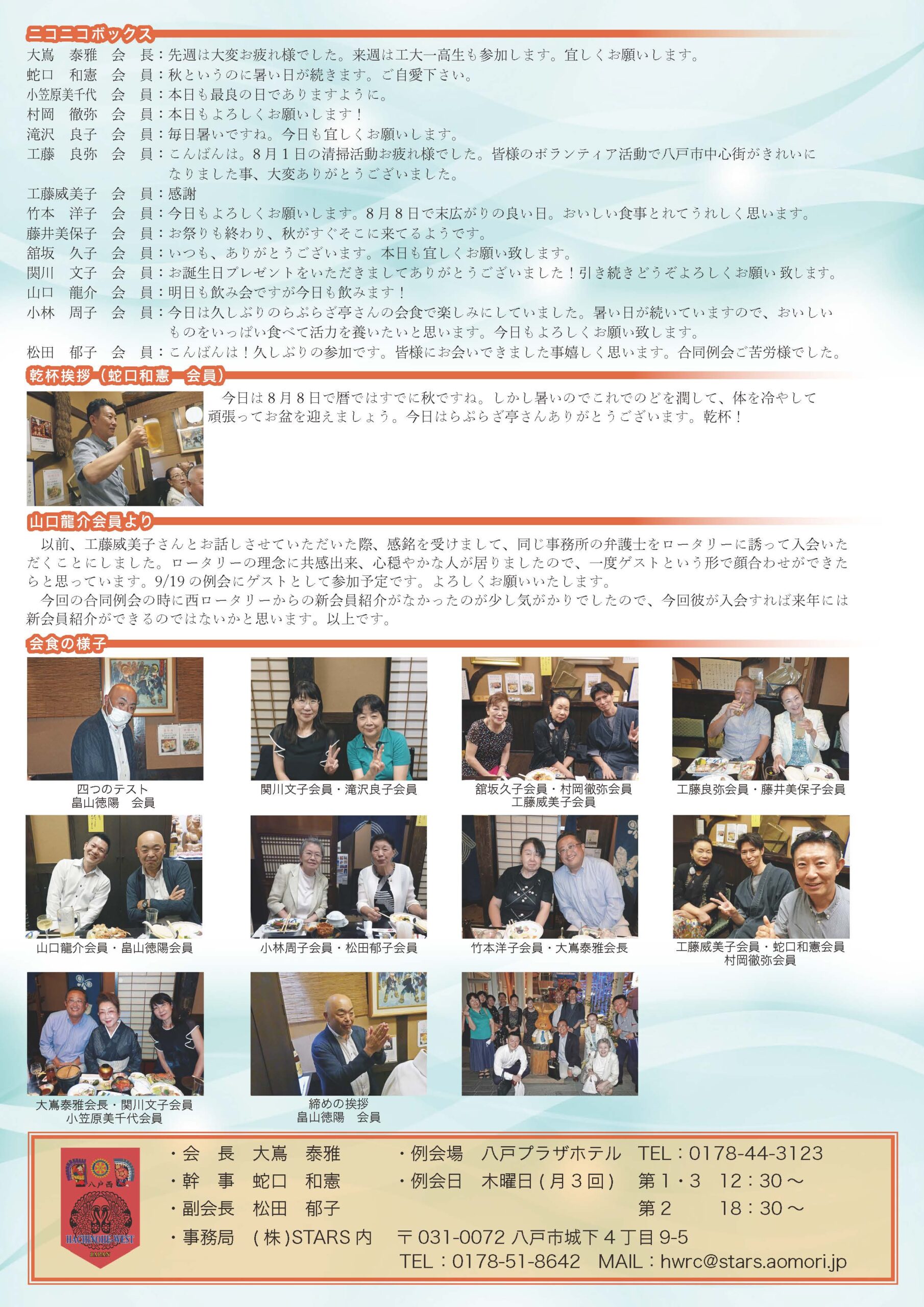 169回 八戸西ロータリークラブ会報
