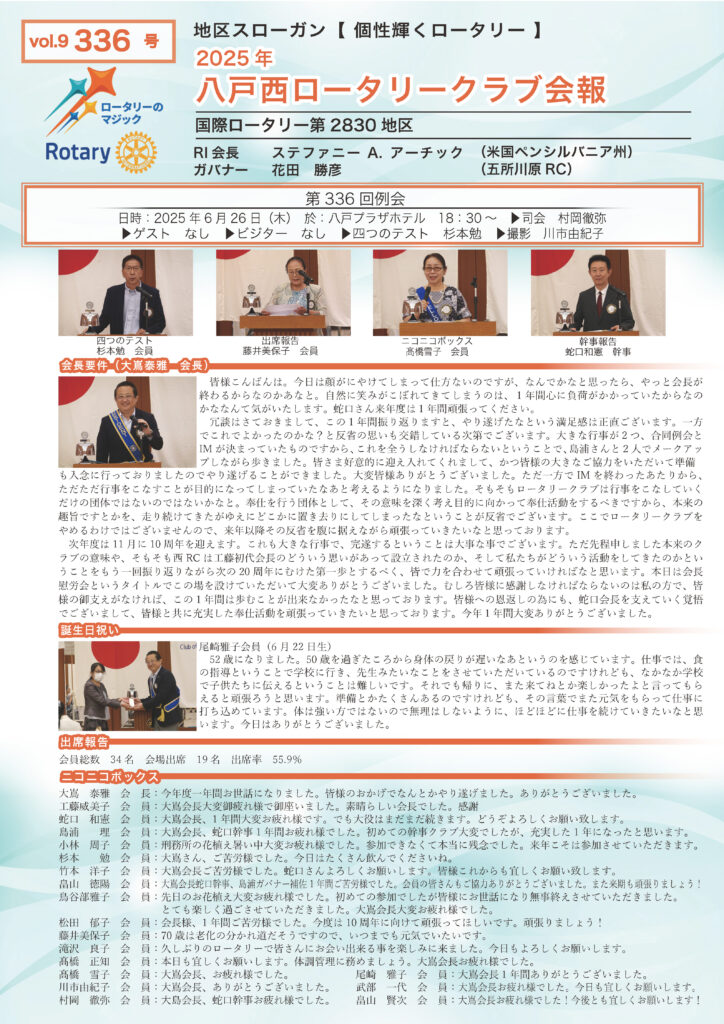 336回号 八戸西ロータリークラブ会報誌