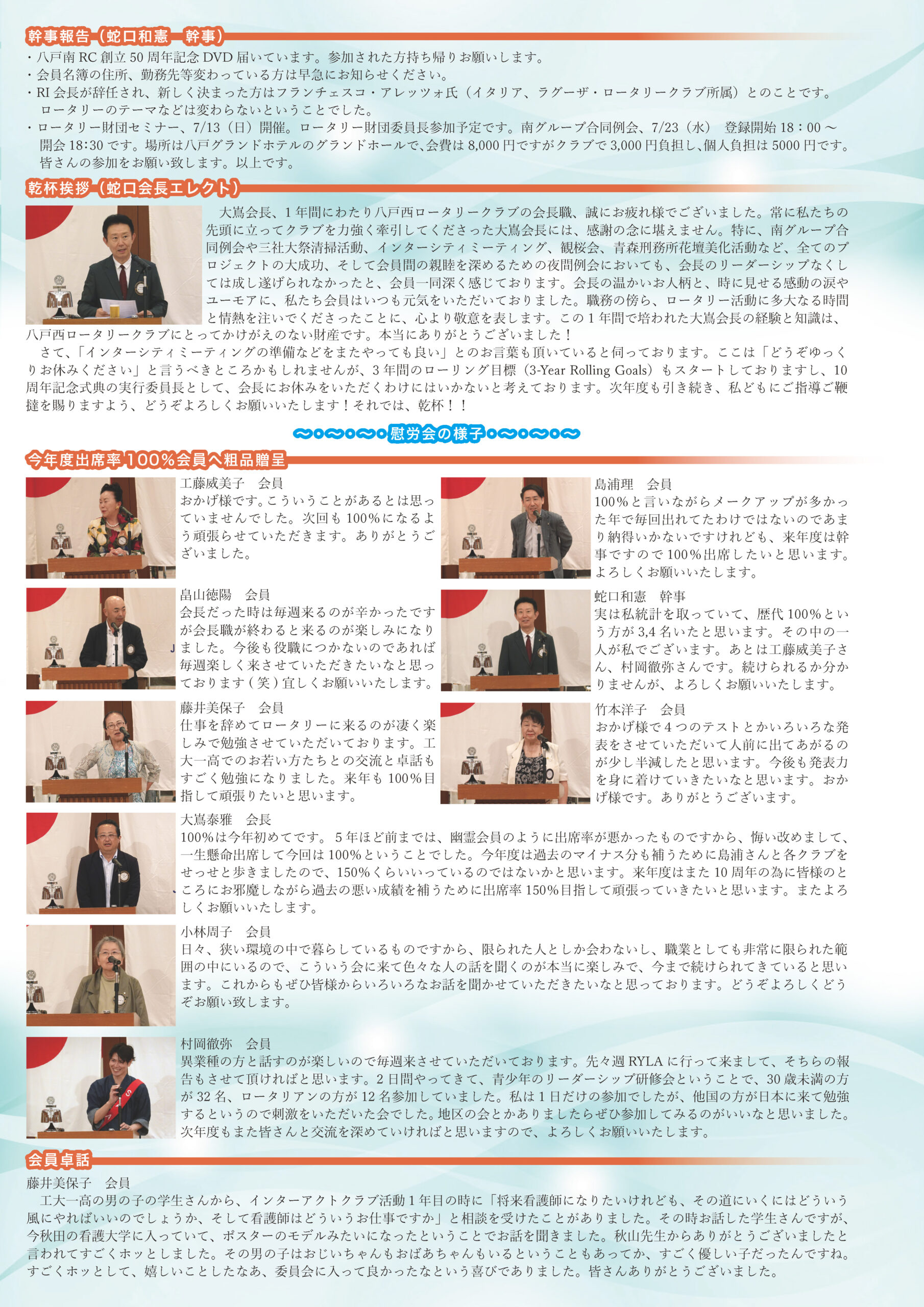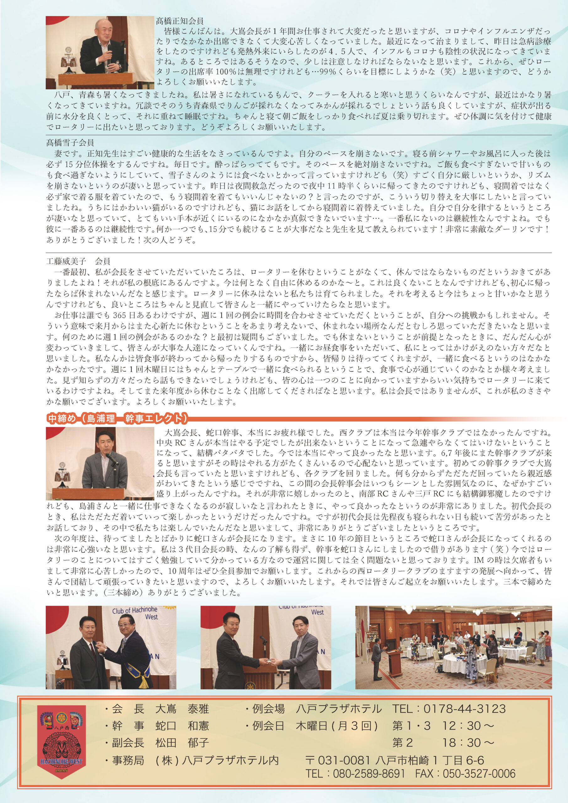 220回 八戸西ロータリークラブ会報