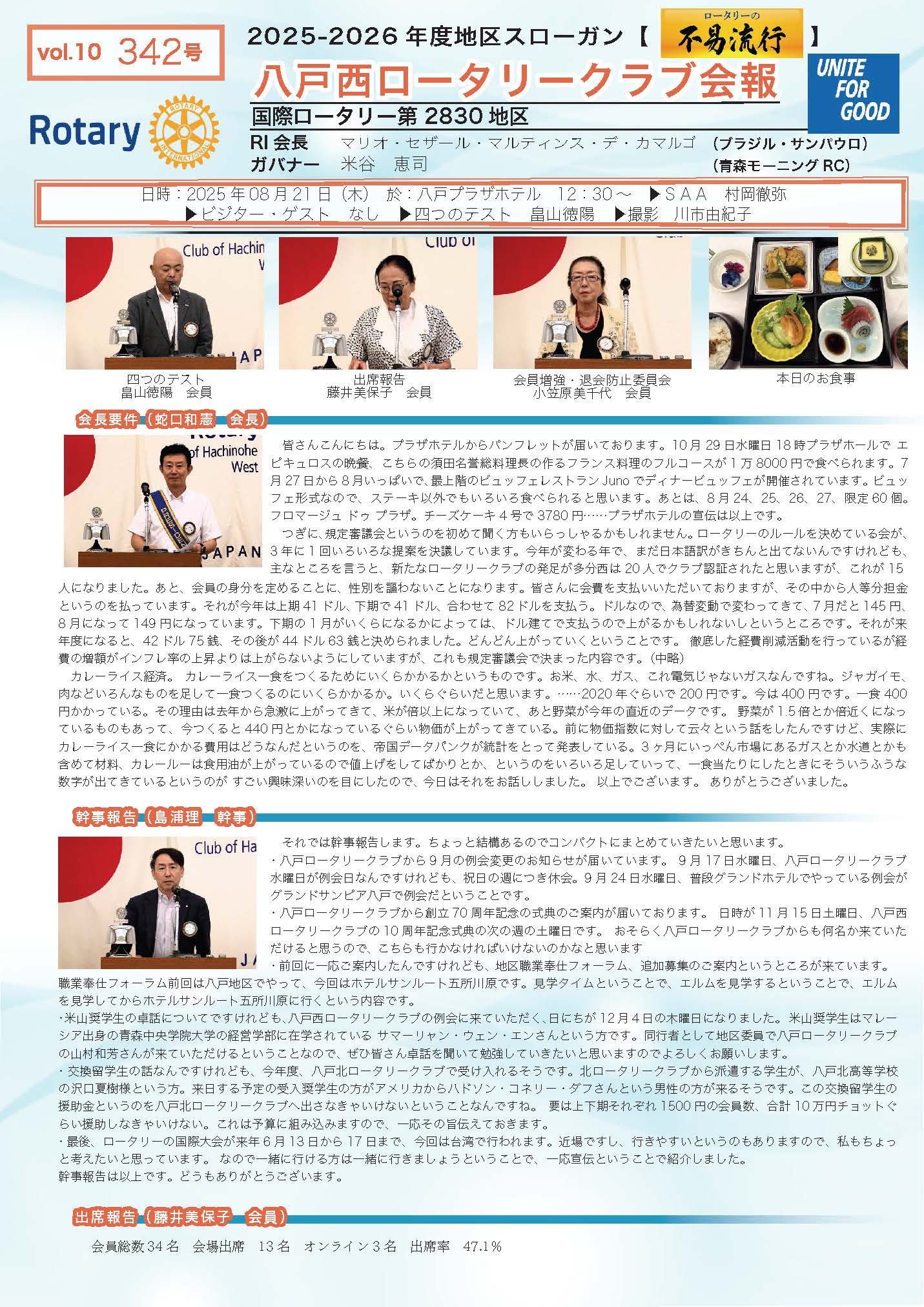342回号 八戸西ロータリークラブ会報誌