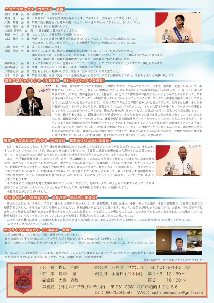 220回 八戸西ロータリークラブ会報