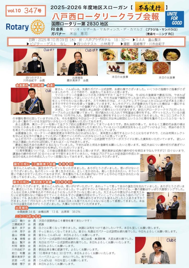 347回号 八戸西ロータリークラブ会報誌