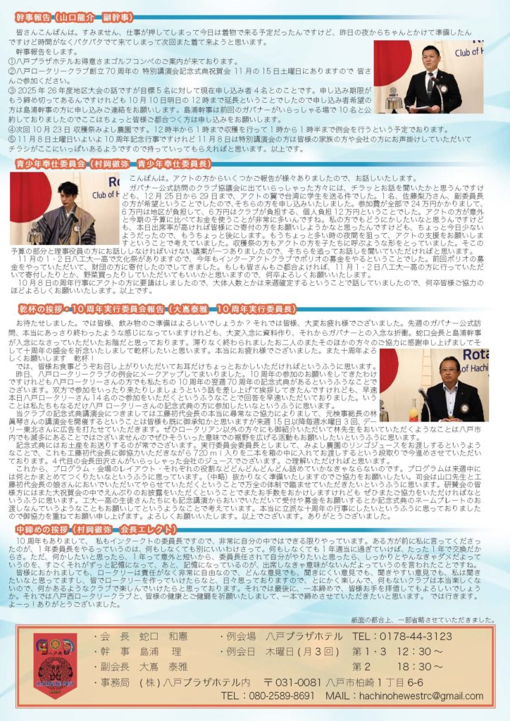 134回 八戸西ロータリークラブ会報